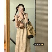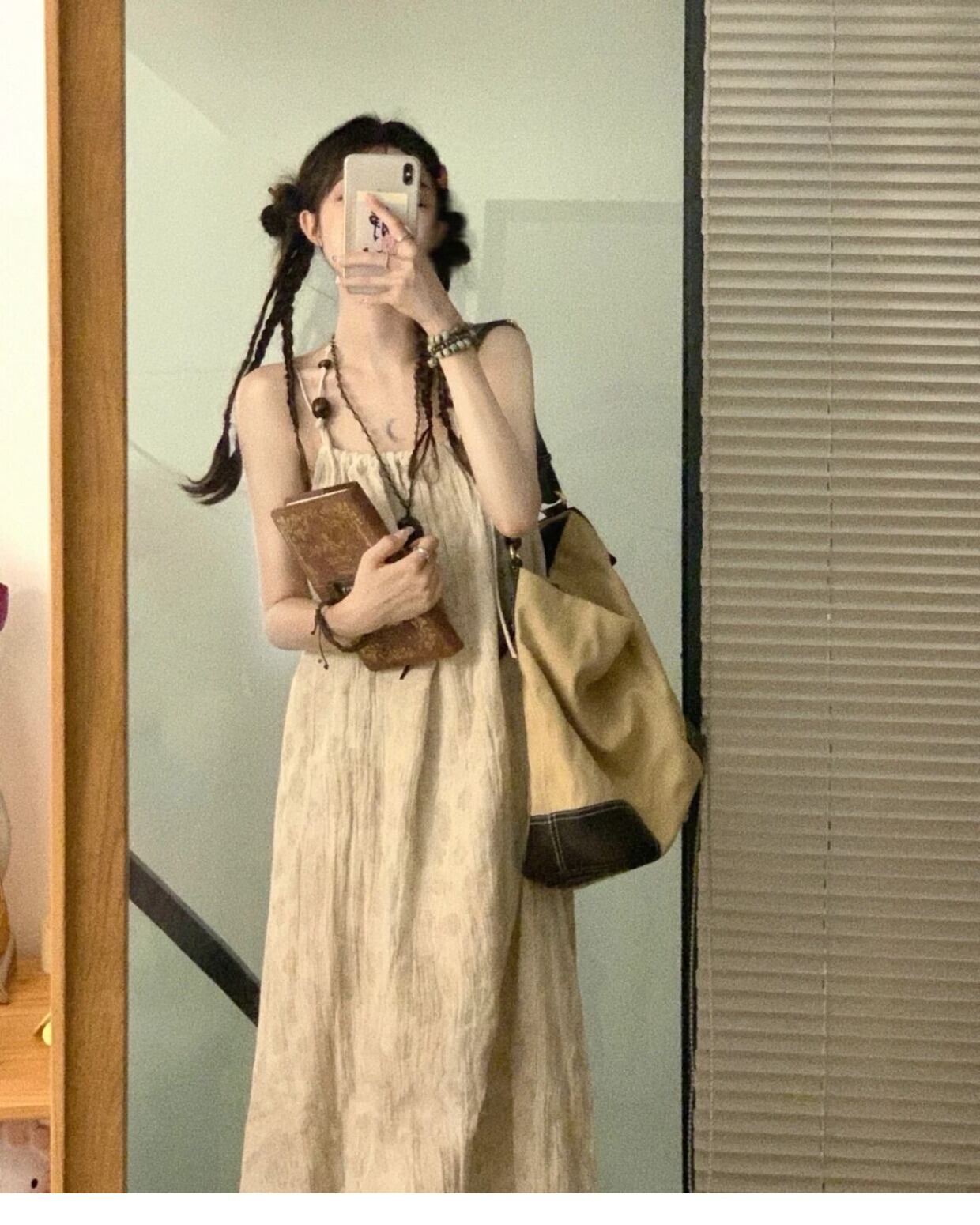 Retro chic mid-length suspender dress women's summer 2022 new French backless loose A-line skirt レトロ サマー 夏物 スカート Aライン 0921980573706501