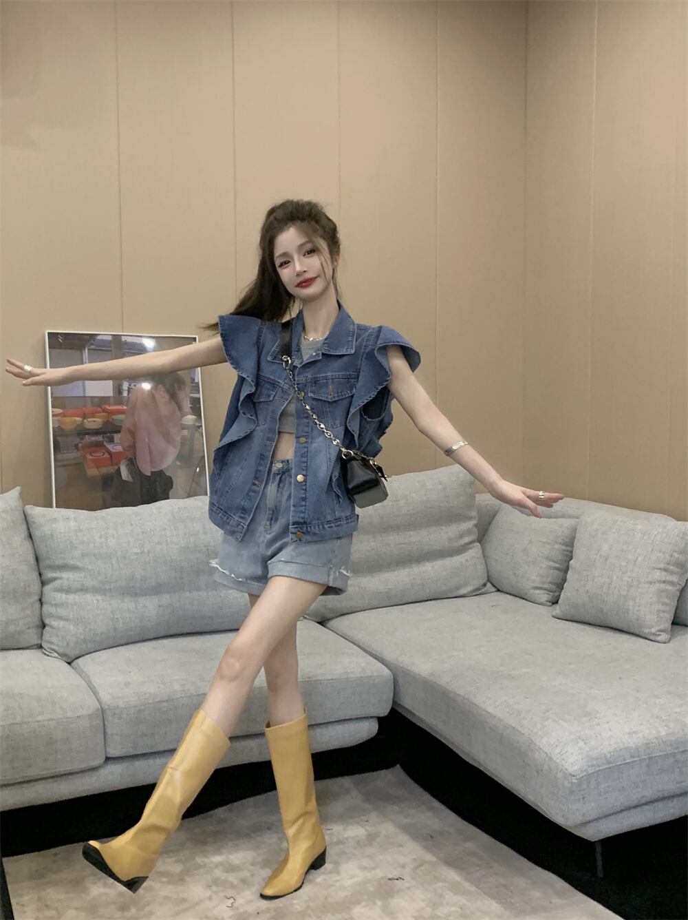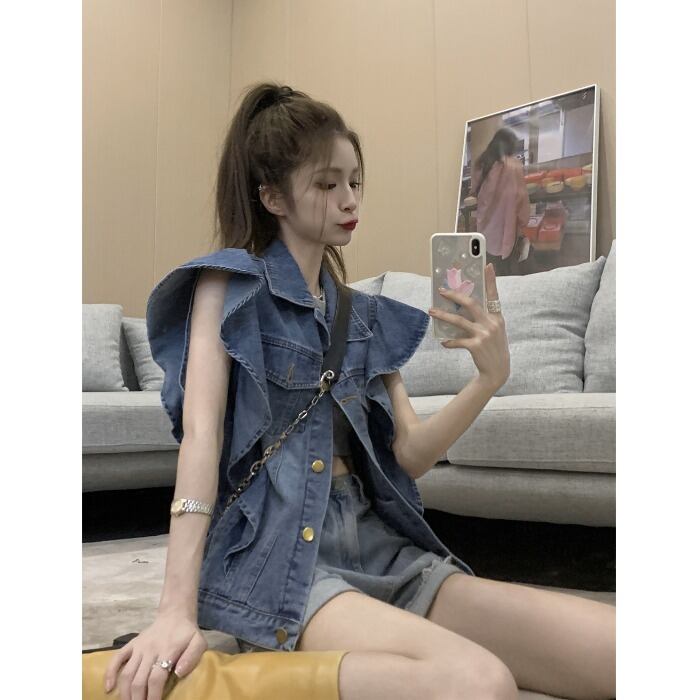 Retro chic chic ruffled denim jacket women's summer 2022 new design sense temperament thin top trendy レトロ サマー 夏物 0921942165537756