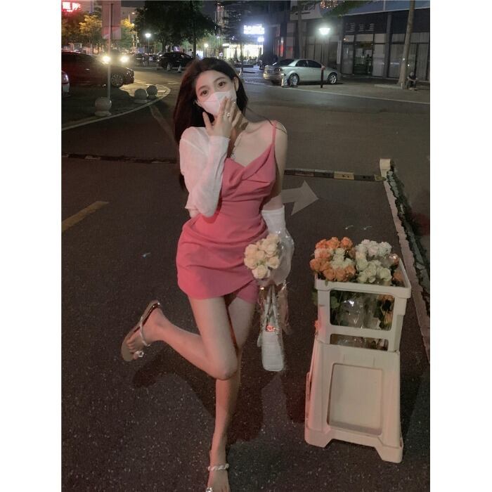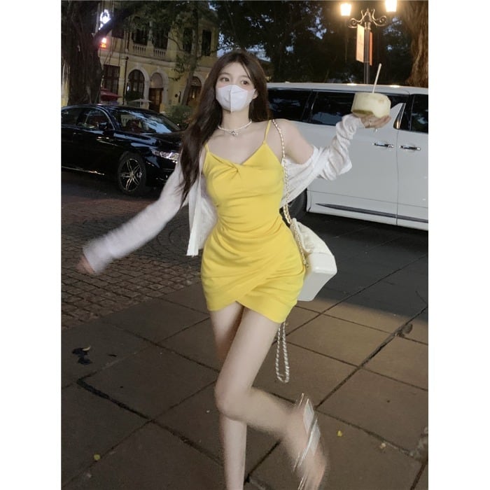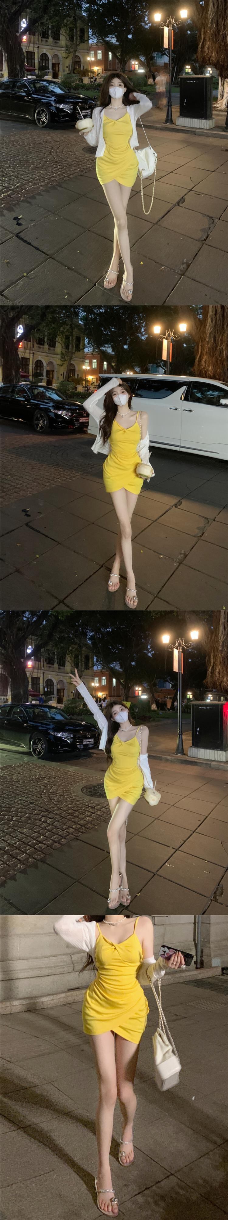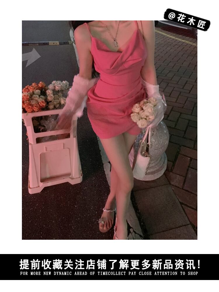 -quality pleated V-neck suspender dress women's summer 2022 new pure desire backless slim fit waist bag hip skirt プリーツ サマー 夏物 スカート Vネック スリム ピュア 0921945173312350