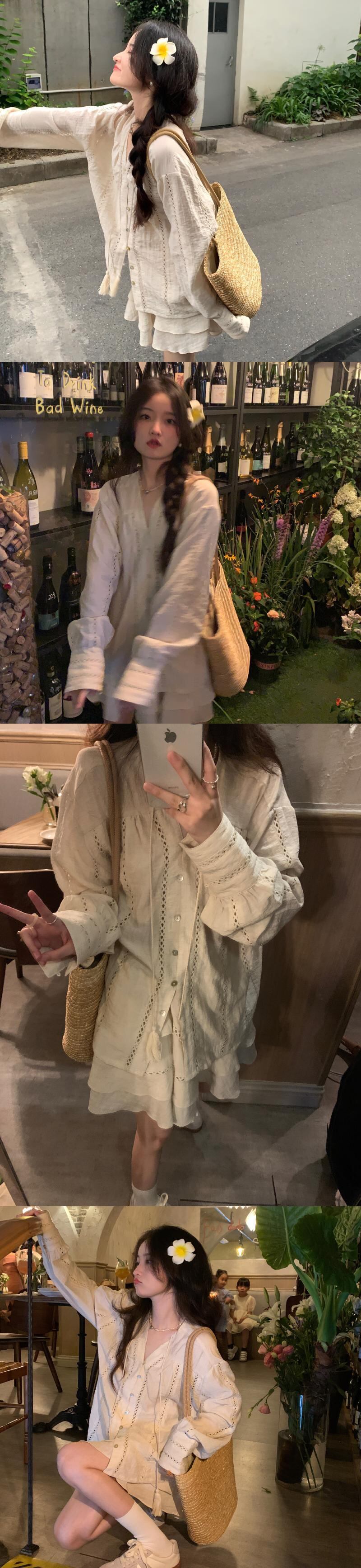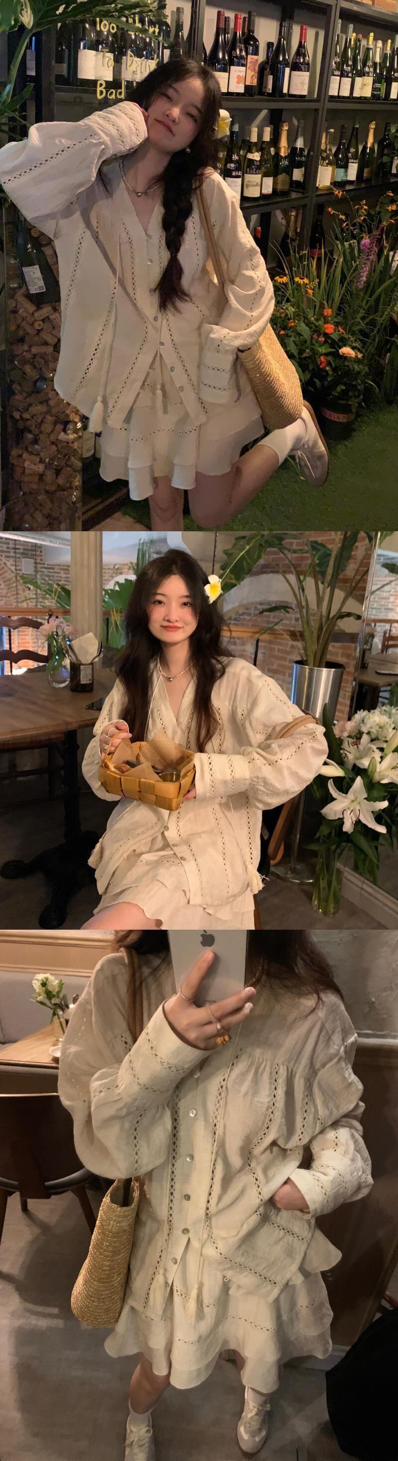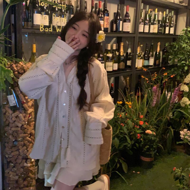 sense gentle suit female summer 2022 new heavy industry lace sunscreen shirt skirt two-piece set レース サマー 夏物 スカート 0921924123602710