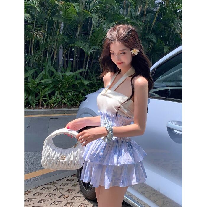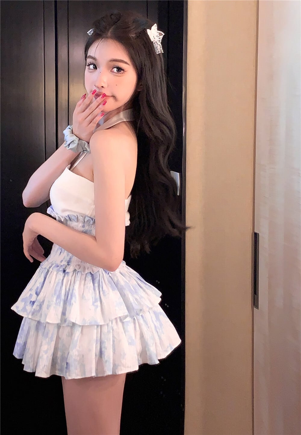 Pure desire chic suit skirt female summer 2022 new knitted halterneck vest tie-dye cake skirt two-piece set サマー 夏物 スカート 0921993293176933