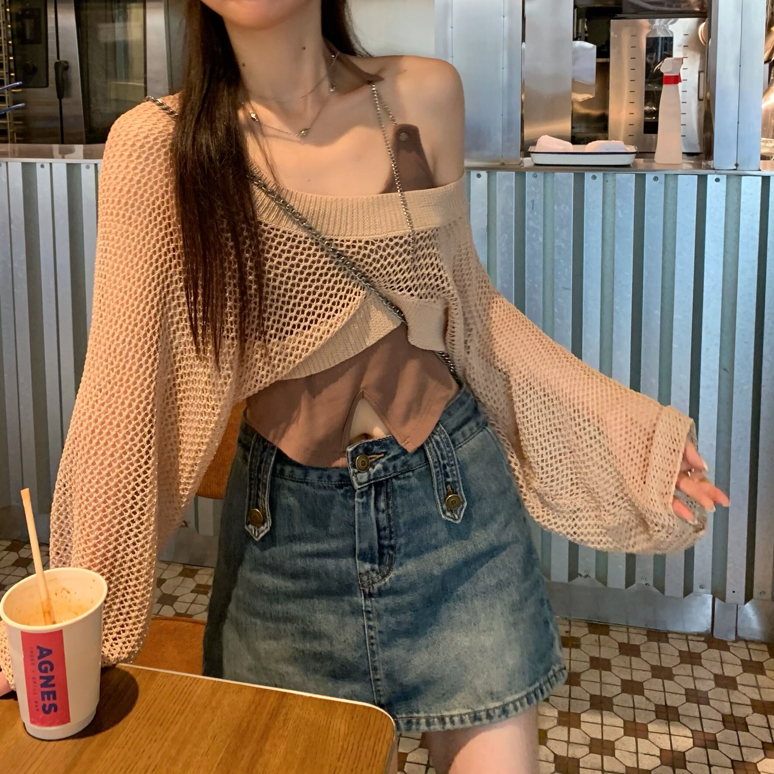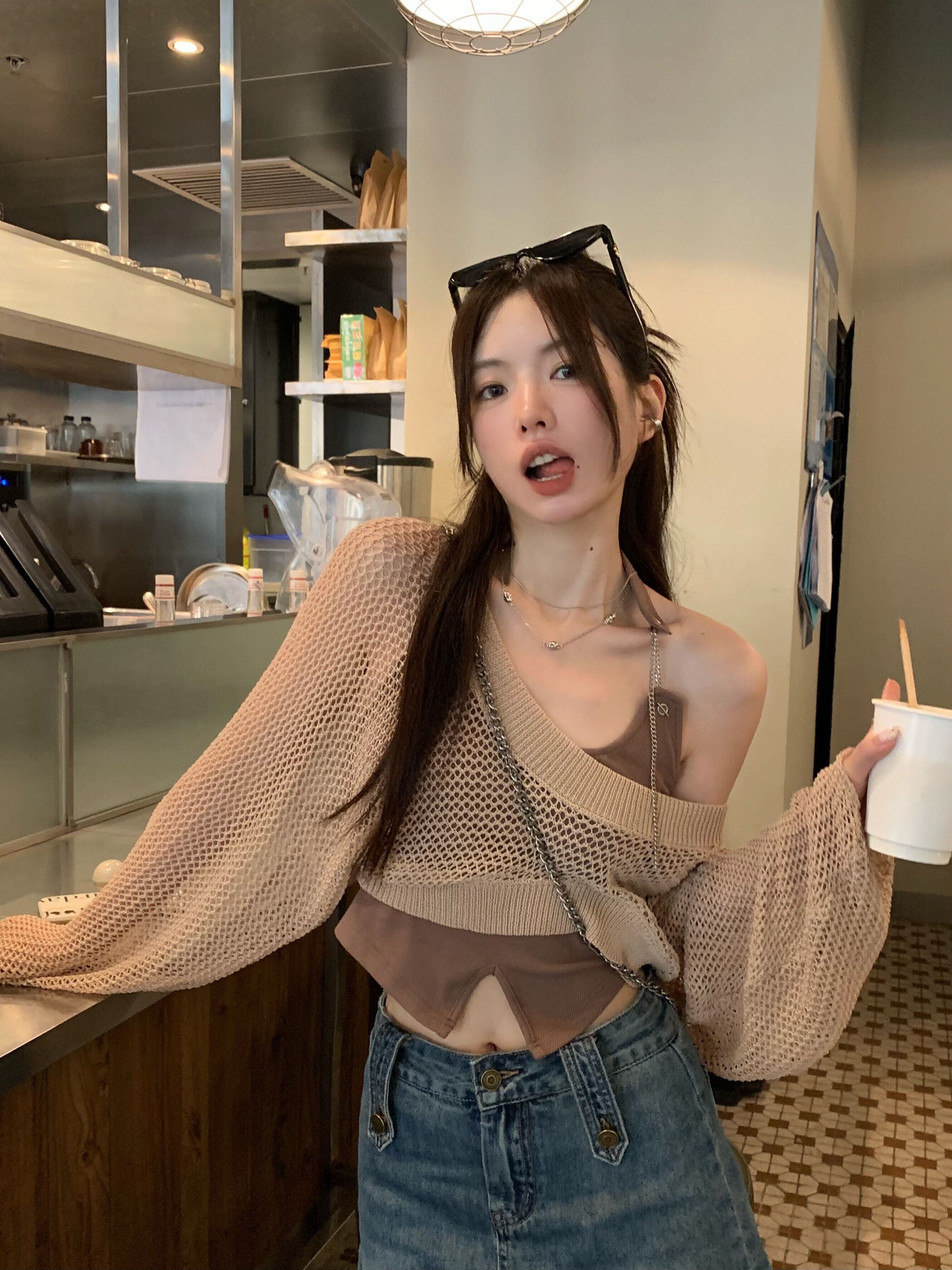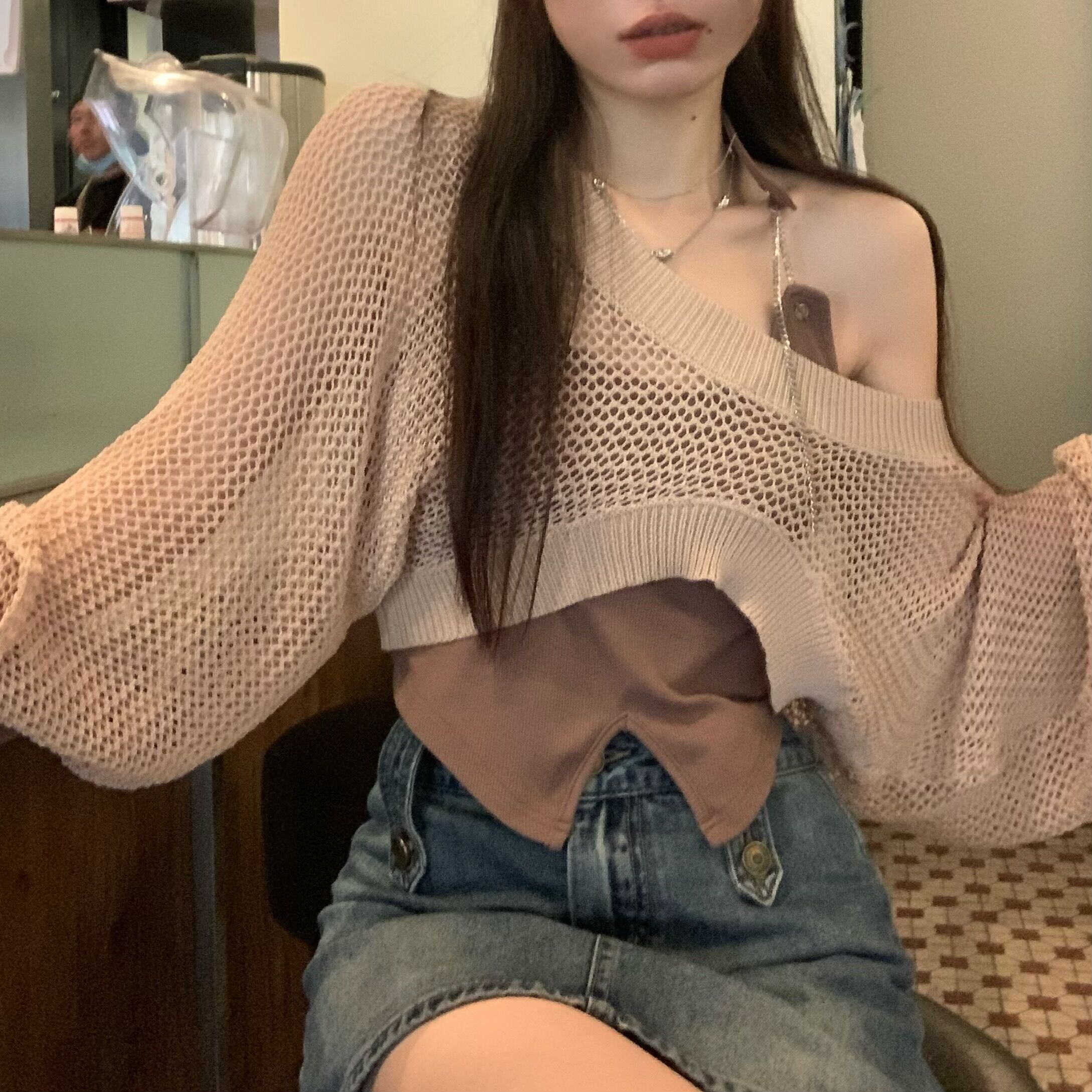 デザインセンスホットガールオフショルダー中空長袖セーター女性の2022年秋の新しい怠惰なシックなショートトップトレンド ロング オータム 秋物 0921931830883211