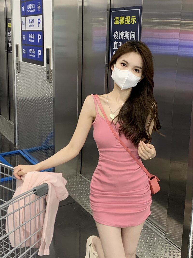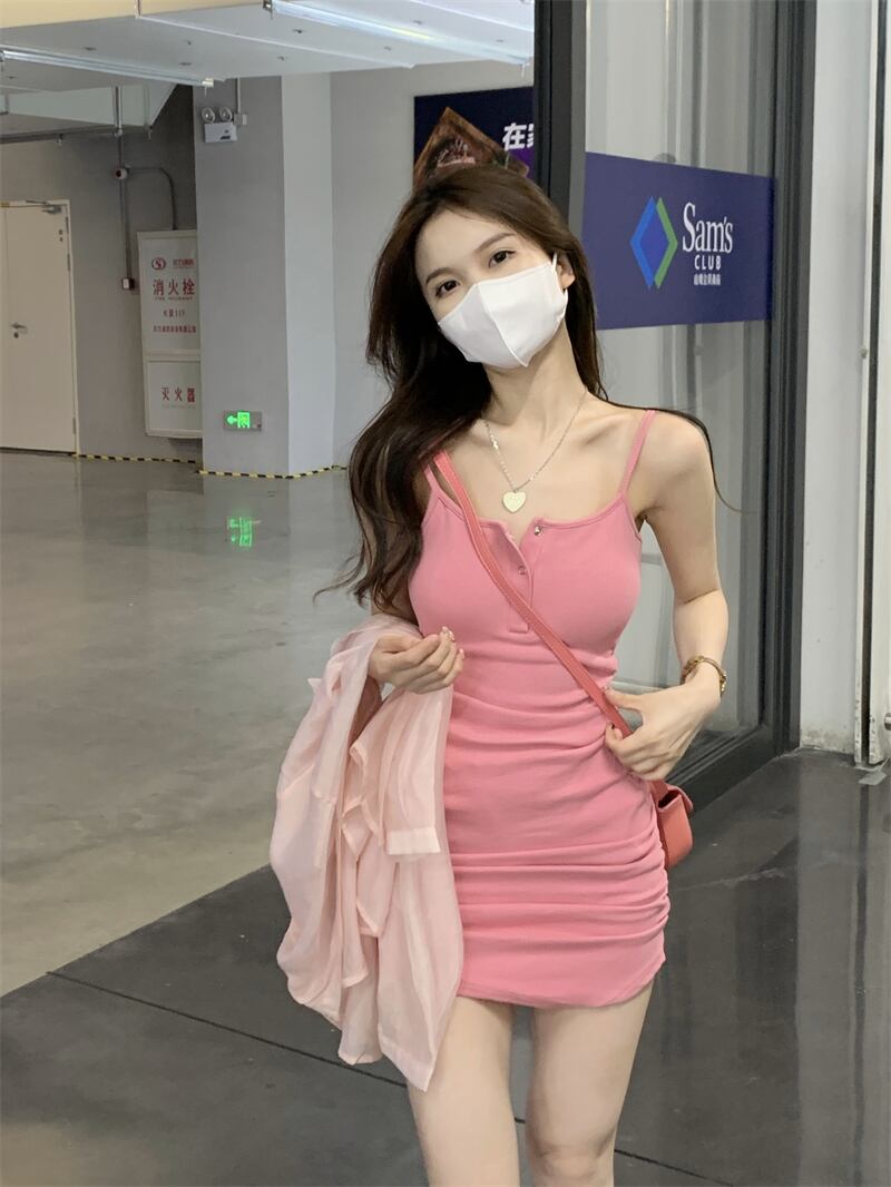 Sweet and spicy pink suspender dress female summer 2022 new waist chic pleated hip short skirt trend ショート ピンク 大人ガーリー スウィート キュート カジュアル プリーツ サマー 夏物 スカート 092197653151644