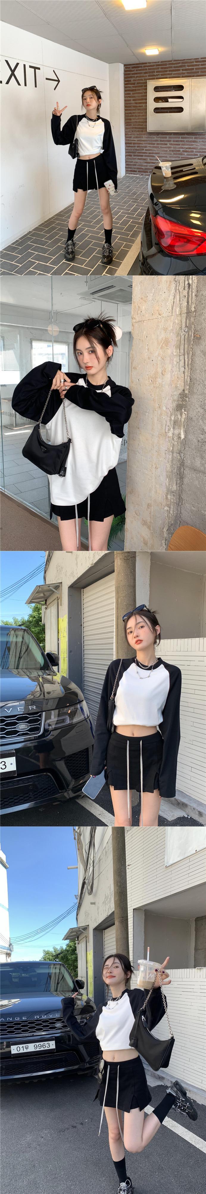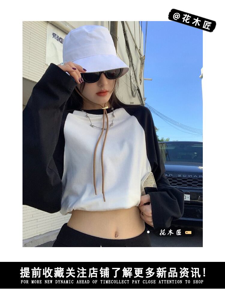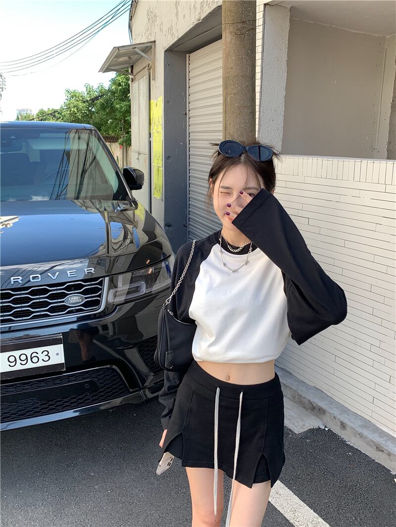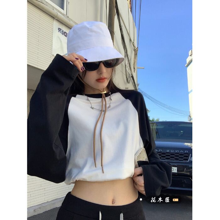 デザインセンスファッションカラーマッチング長袖Tシャツ女性の2022年秋の新しい韓国語バージョンオールマッチホットガールシントップインタイド ロング オータム 秋物 092198575415470