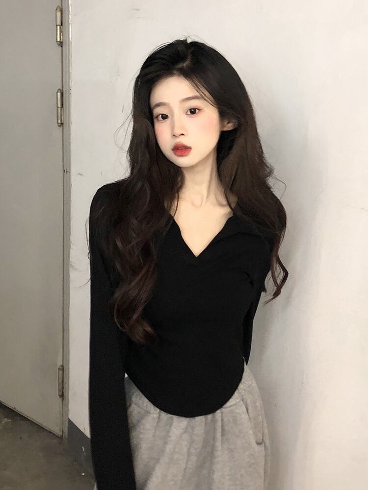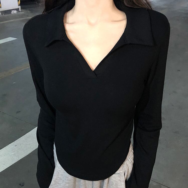 Pure desire temperament polo collar white long-sleeved T-shirt women's autumn 2022 new version sweet and spicy slim slim top ロング ホワイト 大人ガーリー スウィート キュート カジュアル オータム 秋物 スリム Tシャツ 0921925481733681