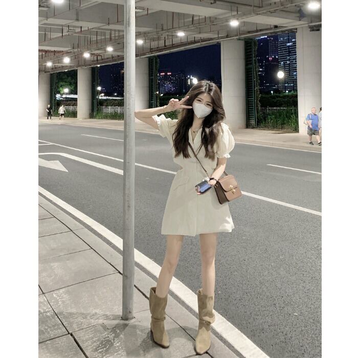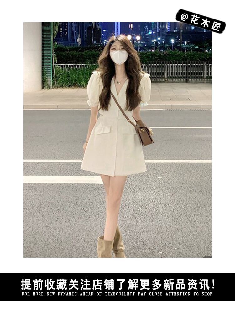 ハイエンドのシックなショーウエスト半袖スーツドレスの女性の2022年夏の新しい韓国語版の気質ウエストAラインスカート サマー 夏物 0921922580292334