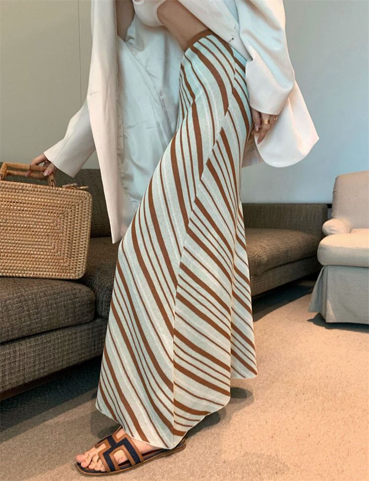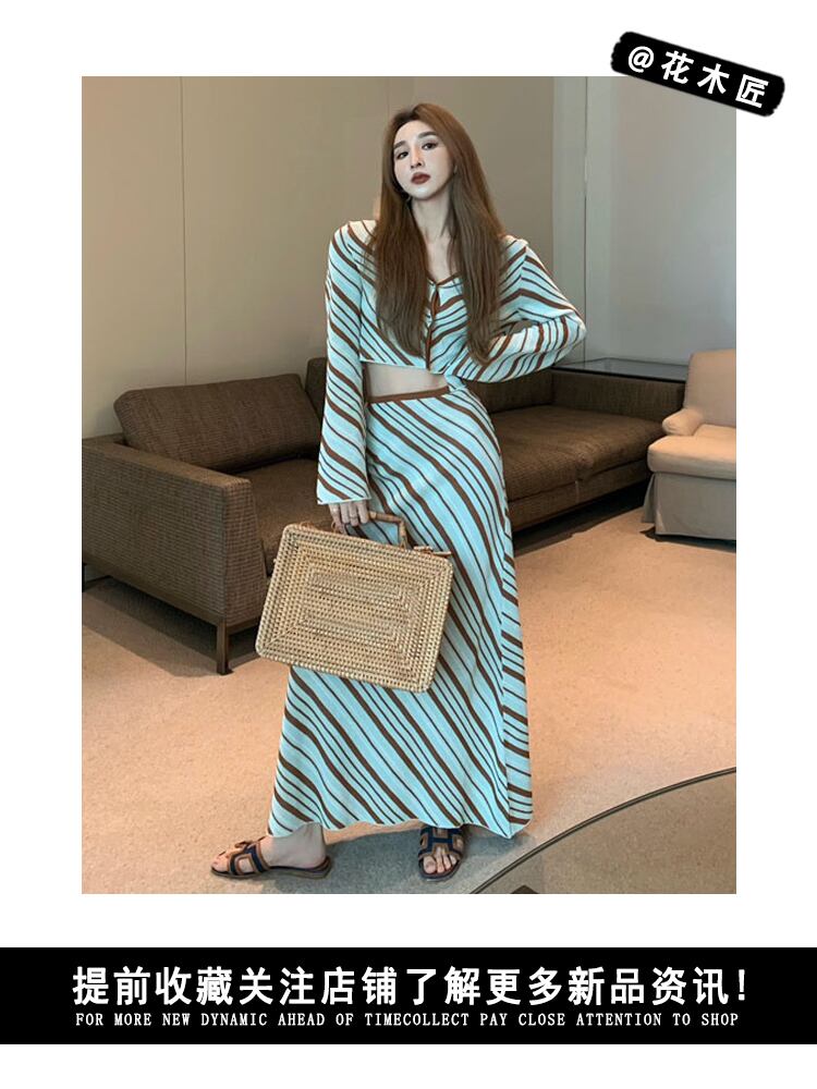 Color matching striped suit women's summer 2022 new eign style long-sleeved sunscreen top skirt fashion two-piece tide ロング サマー 夏物 スカート ストライプ 0921990363869211