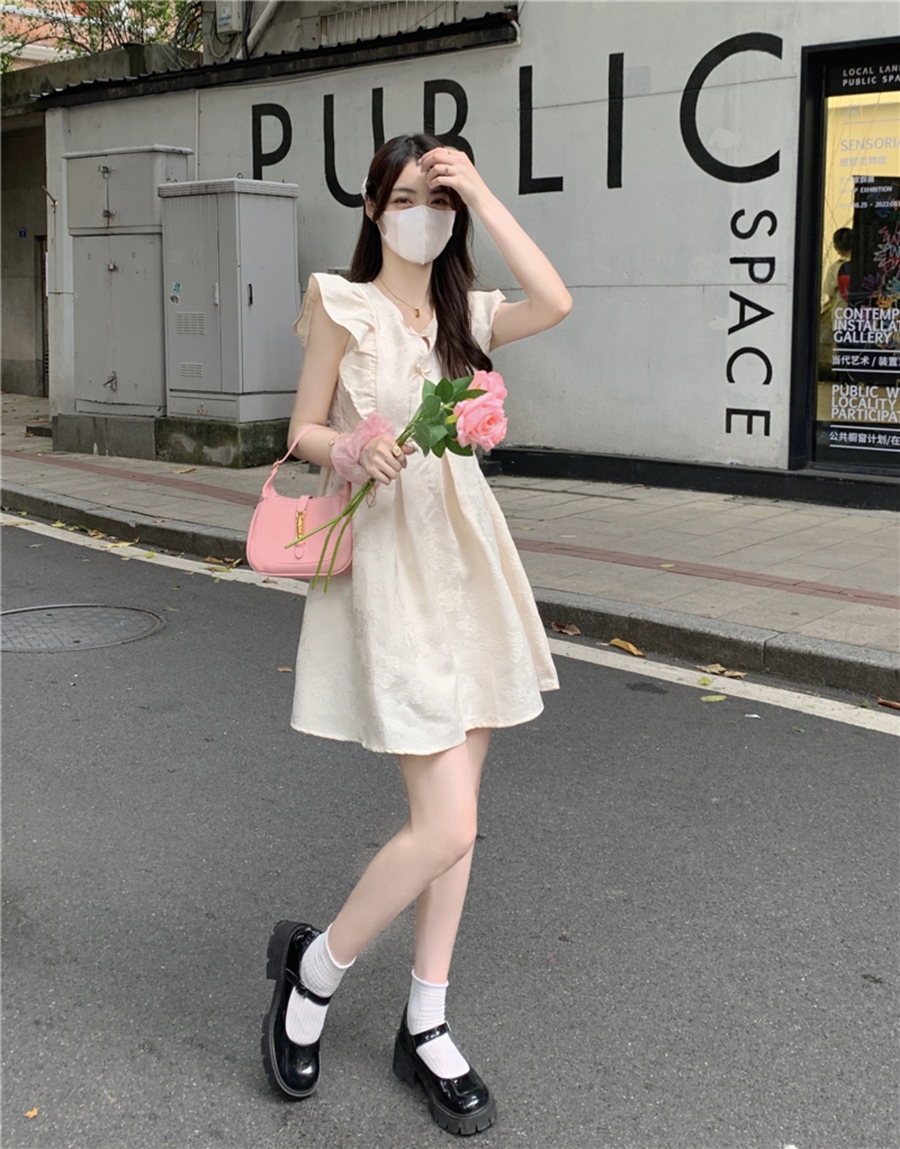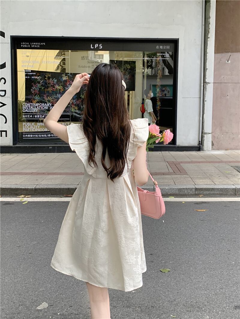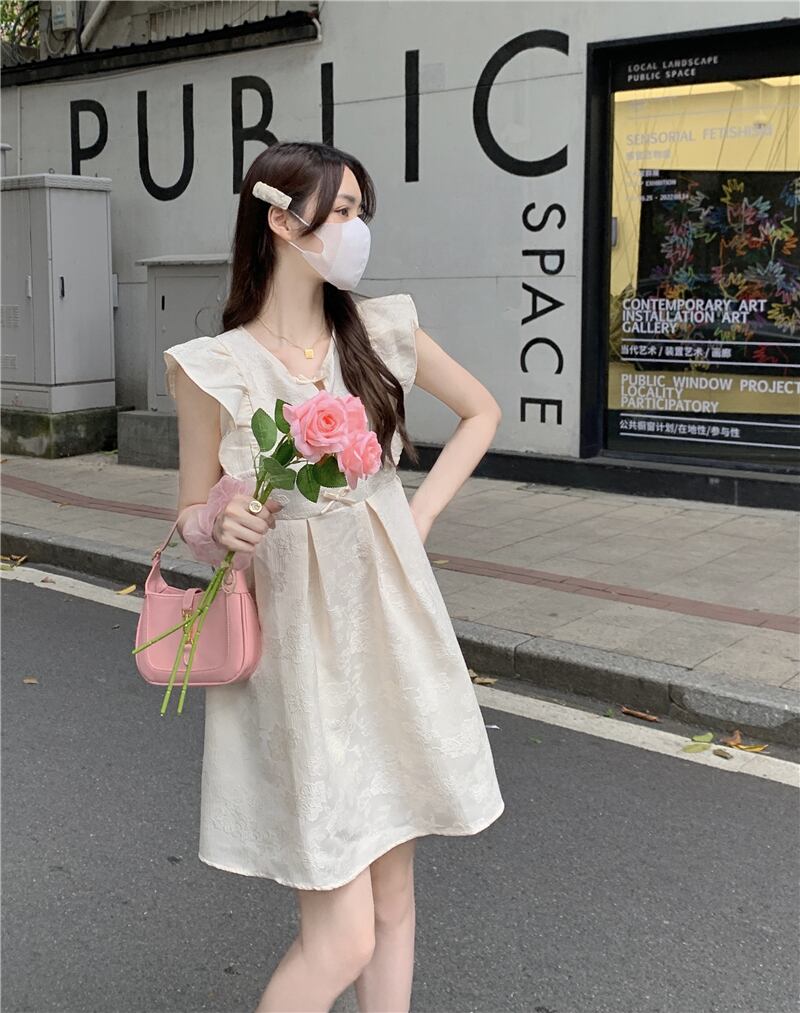優しい風甘いフライング スリーブ ドレス女性夏 2022 新しいガーリーシックな弓ウエスト A ライン スカート リボン 大人ガーリー スウィート キュート カジュアル サマー 夏物 Aライン 0921982203708439
