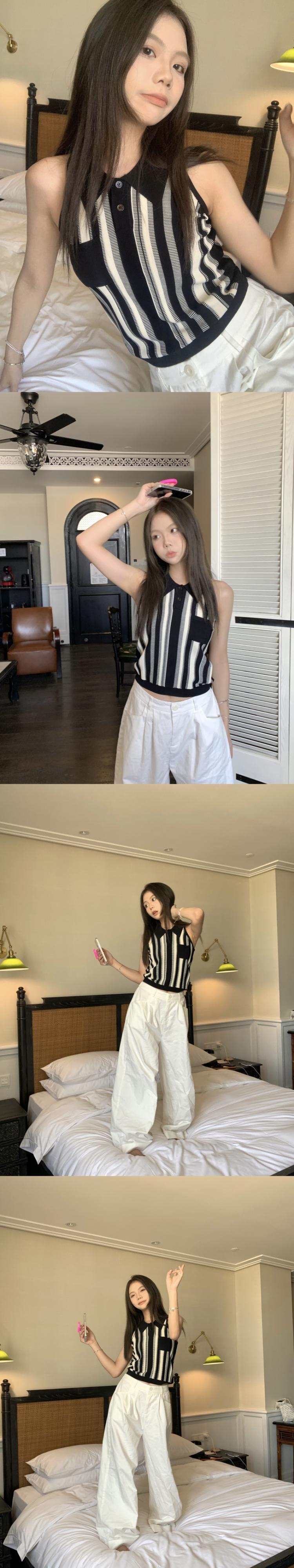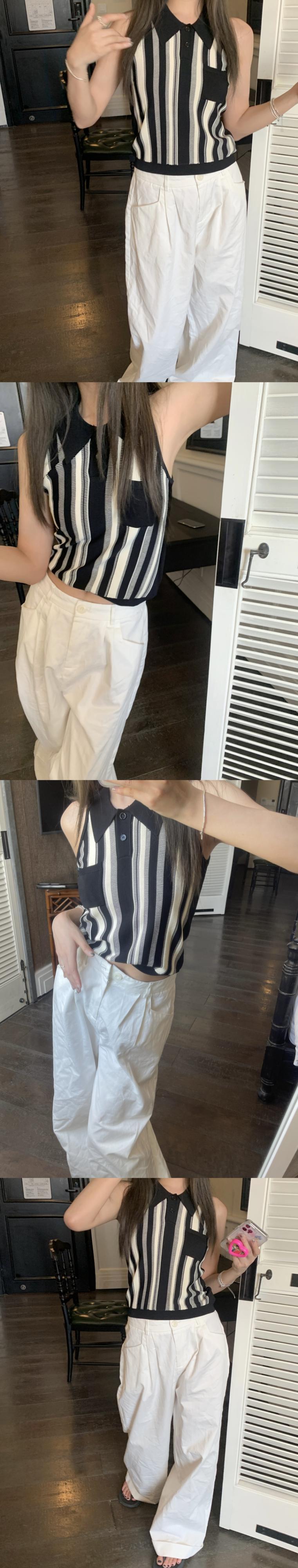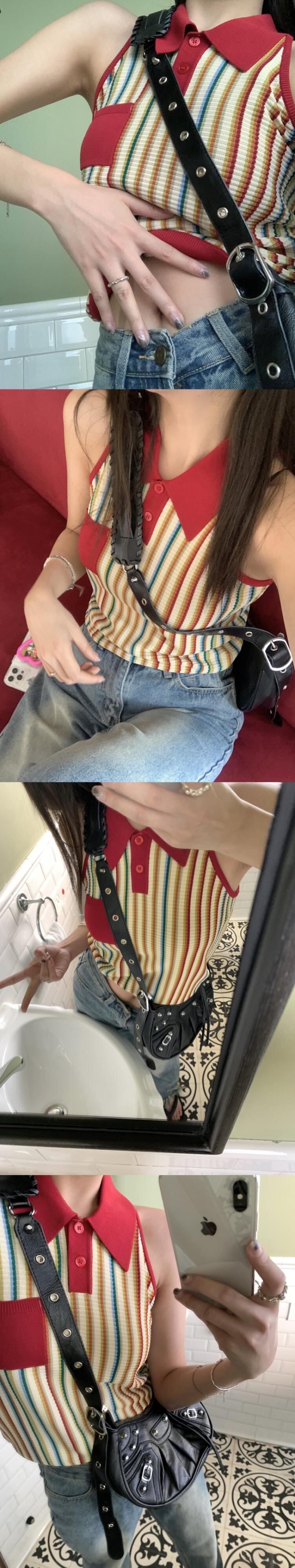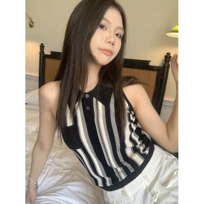 レトロ甘辛カラフルストライプニットベスト2022年夏新作ポロカラーデザインセンスアウターショートトップ 大人ガーリー スウィート キュート カジュアル サマー 夏物 0921974969389230
