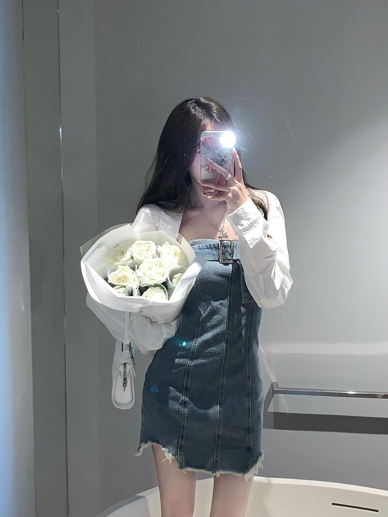 色:Singlepieceofホワイトshawl,デニムtubeトップドレス