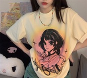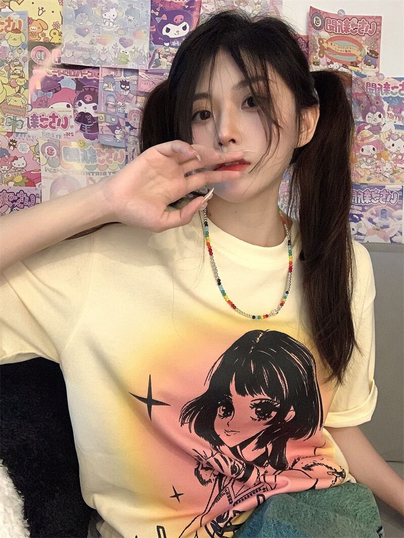 韓国版カジュアルアニメプリント半袖Tシャツレディース2022年夏新作ルーズ&シンオールマッチカップルトップストレンド サマー 夏物 0921912379235149