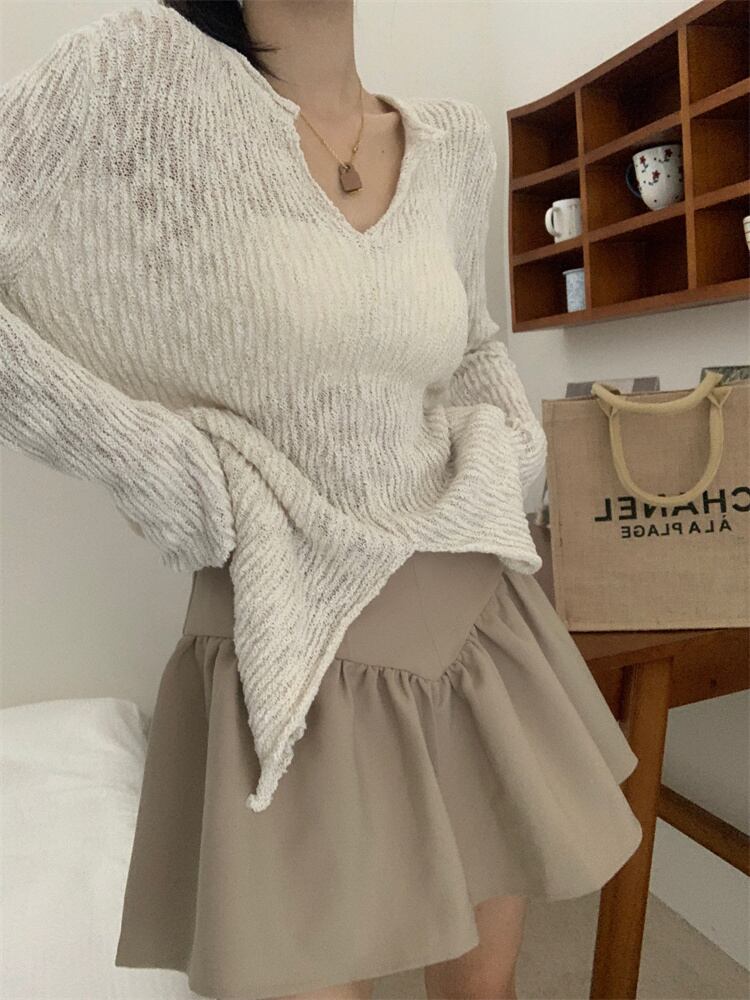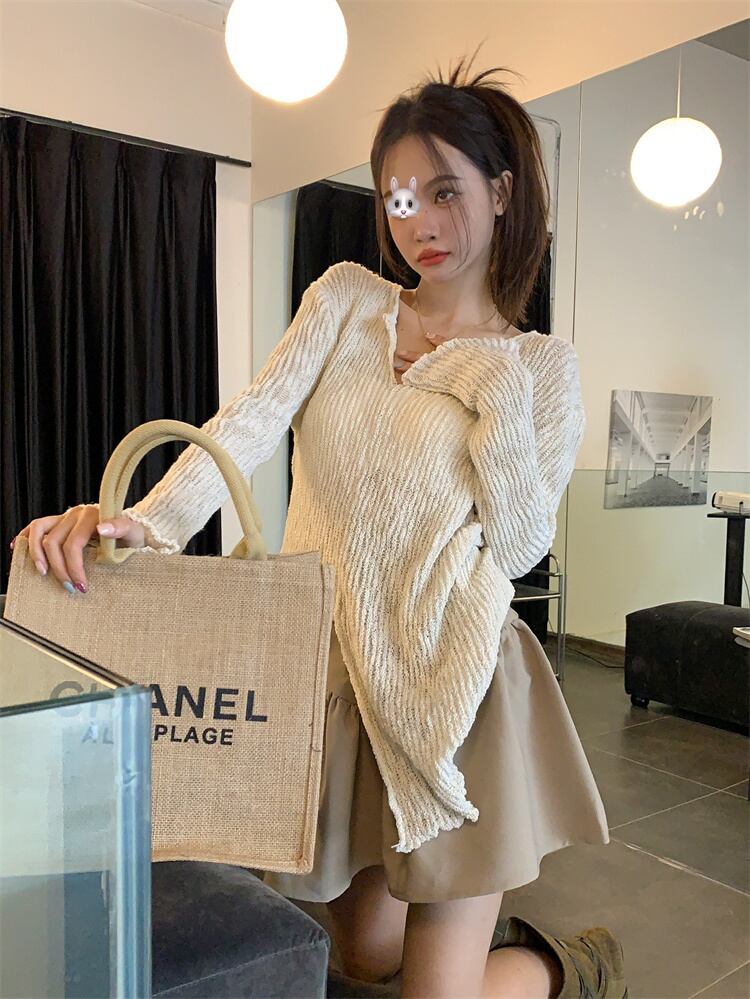 sense chic split half open collar long-sleeved sweater women's autumn 2022 new version thin top ins ロング オータム 秋物 0921968002602073