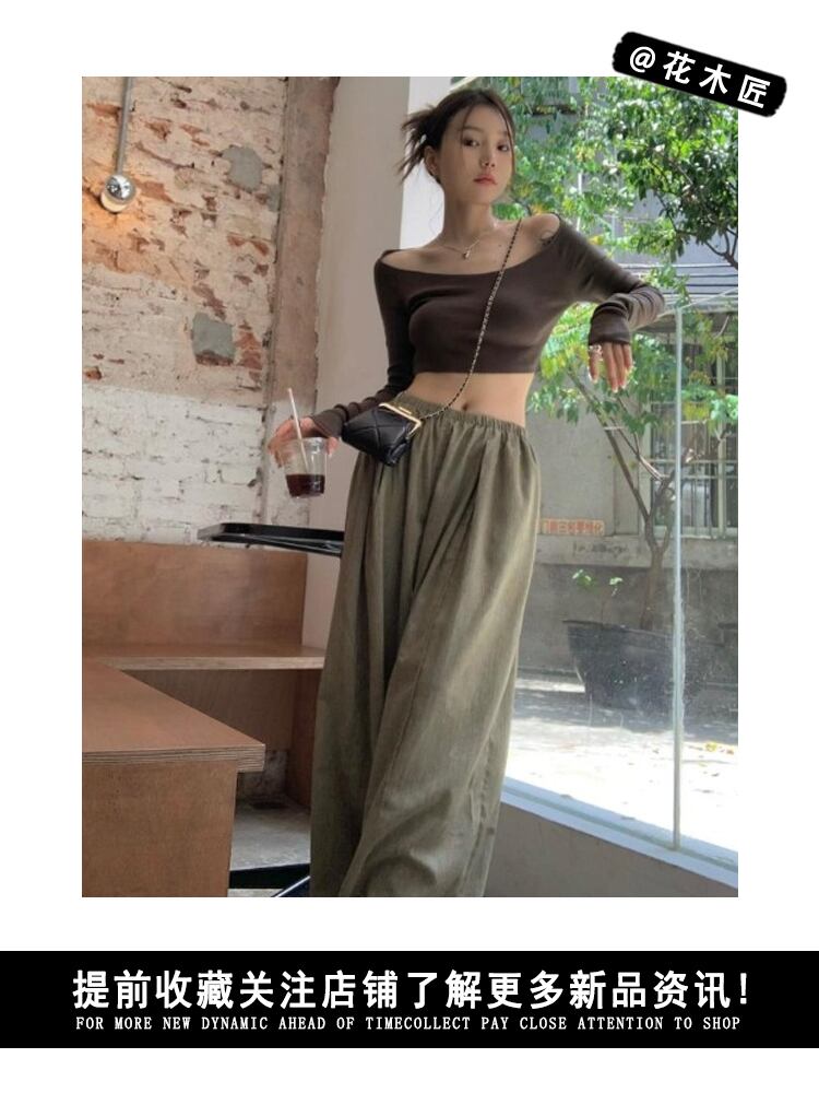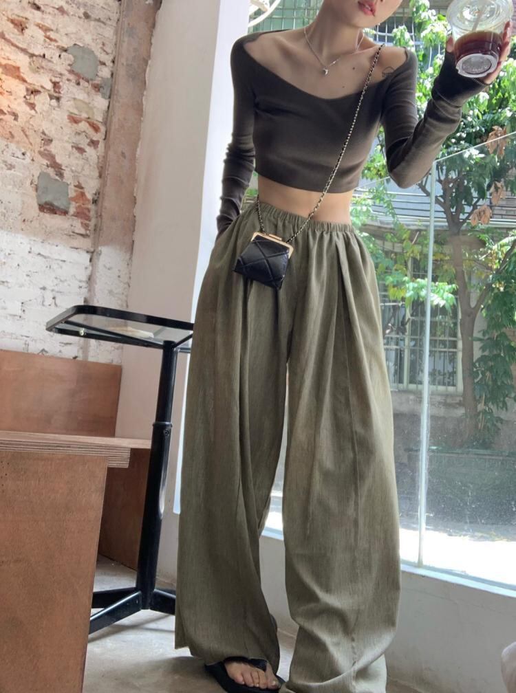 Lazy chic loose high waist casual pants women's autumn 2022 new version all-match thin and mopping wide-leg pants ハイウェスト カジュアル オータム 秋物 0921914844010805