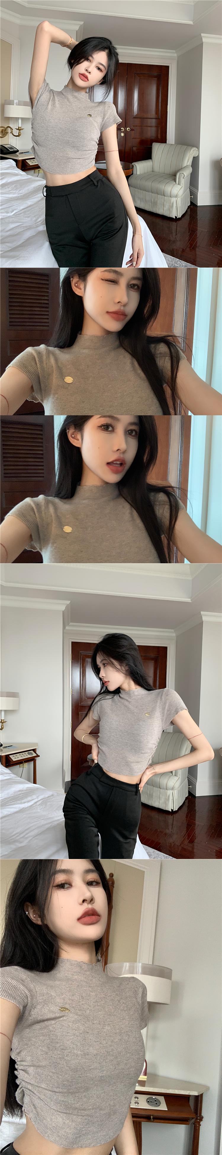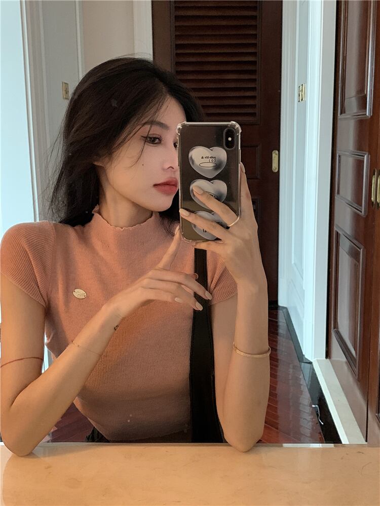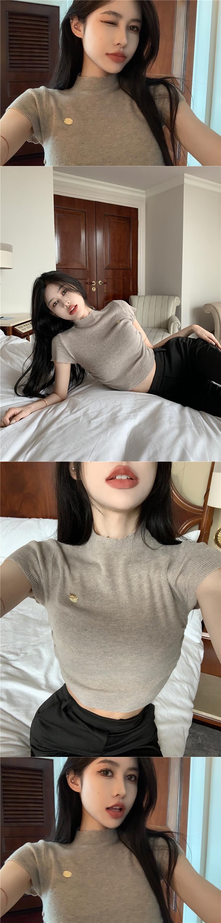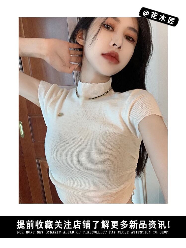 ホットガール薄いハーフタートルネック半袖 Tシャツ女性の夏 2022 新しい韓国スタイルの気質タイトなショートニットトップ サマー 夏物 0921991566896569