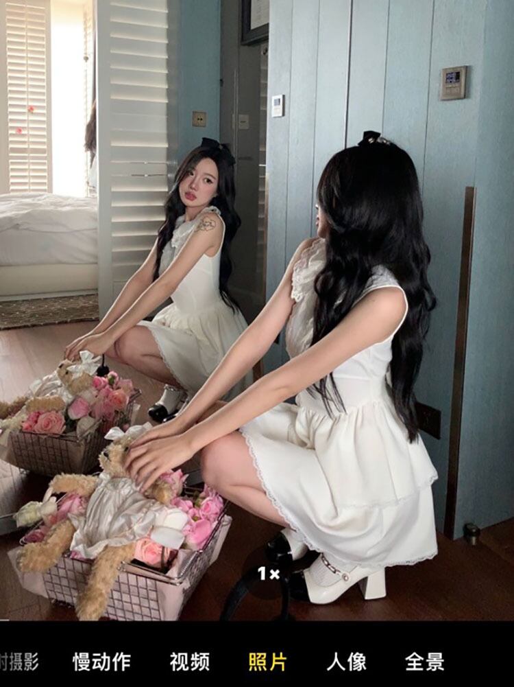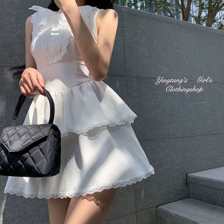 French stitching lace sleeveless dress women's summer 2022 new chic design sense waist thin cake skirt レース サマー 夏物 ノースリーブ スカート ステッチ 0921950553511229