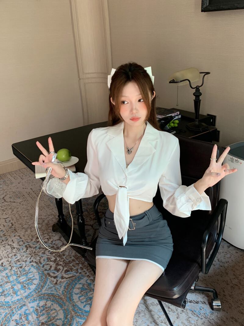 純粋な欲望ホットガール気質シックなスーツの女性の夏 2022 新しい包帯ショートシャツバッグヒップスカートツーピースセット サマー 夏物 0921911621752110