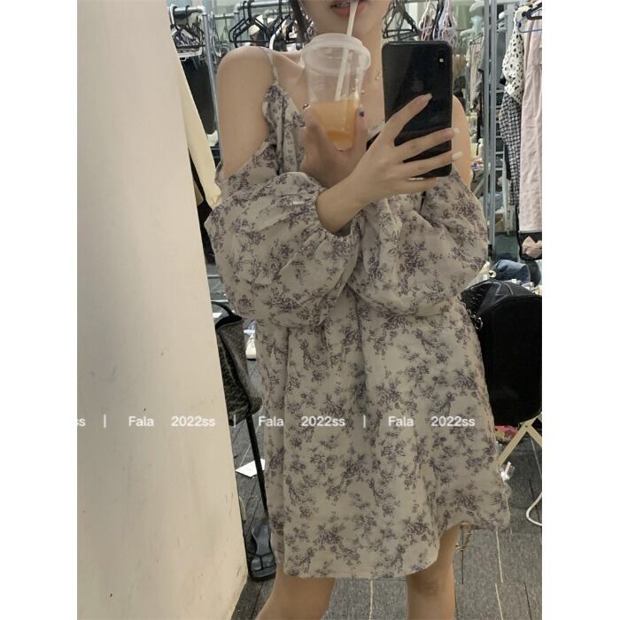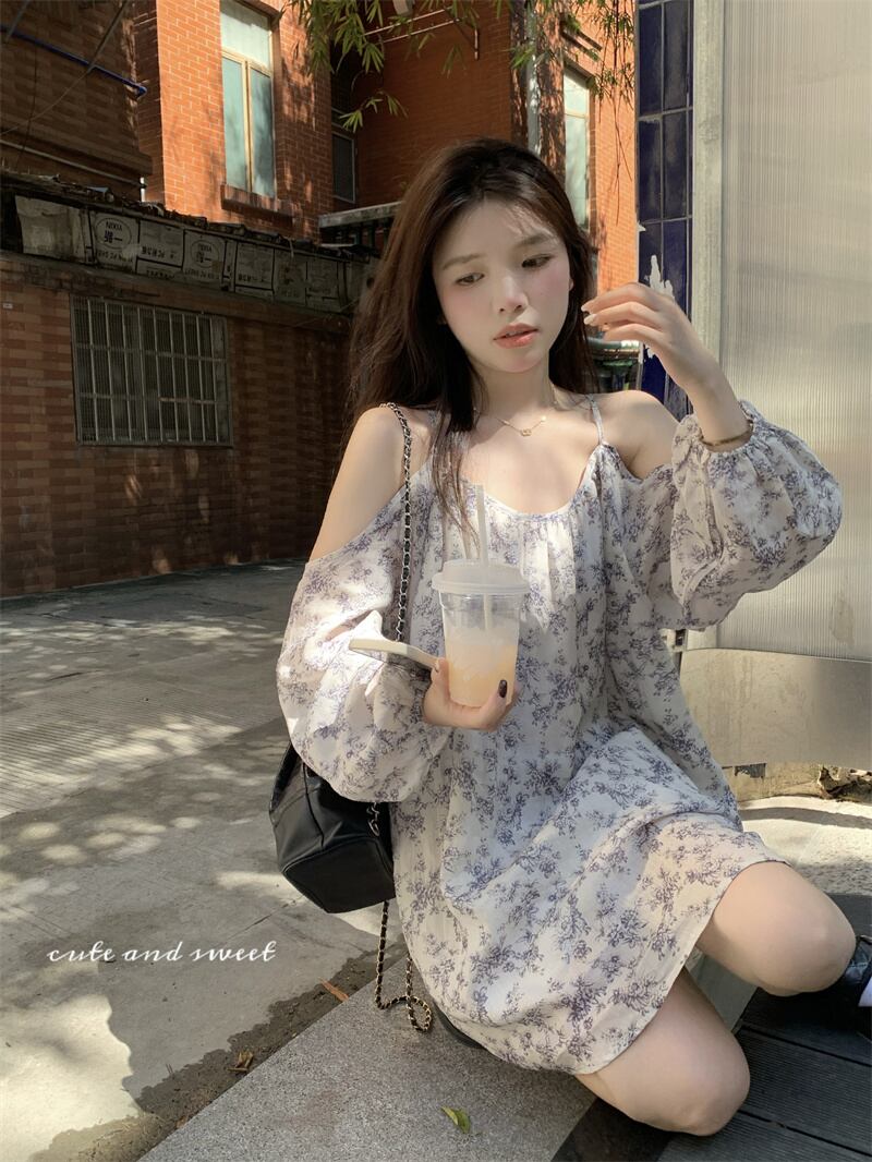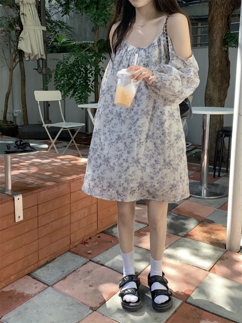 sense off-the-shoulder sling floral dress women's summer 2022 new version chic loose and thin A-line skirt サマー 夏物 花柄 スカート Aライン 0921934322689699