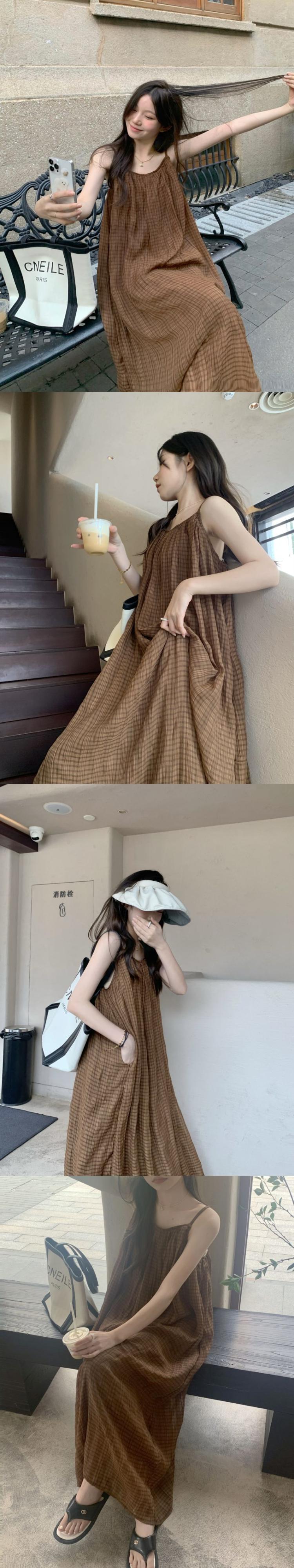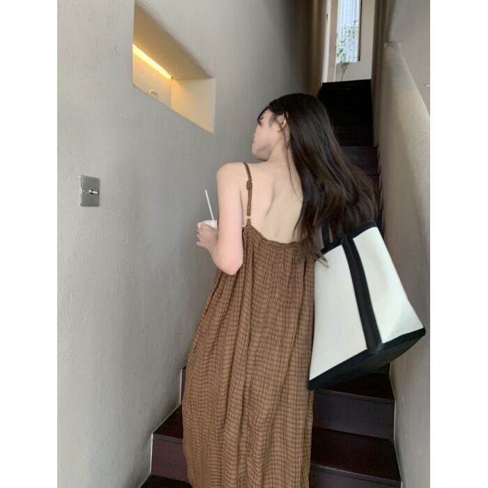 French Lazy Loose Sling Dress Women's Summer 2022 Sensation Small Backless A-line Long Skirt ins ロング サマー 夏物 スカート Aライン 0921918582342681