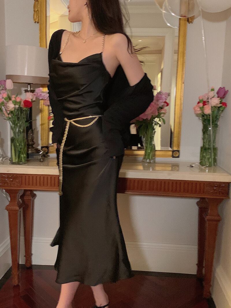Sexy backless metal chain halter dress women's summer 2022 new waist mid-length fishtail skirt サマー 夏物 スカート チェーン 0921978622564559