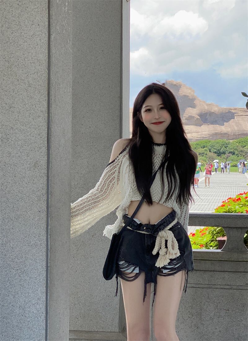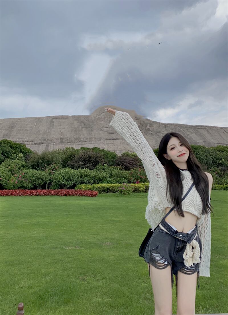sense chic hollow thin section sunscreen sweater women's autumn 2022 new fried street short top trend ショート ストリート オータム 秋物 0921938676471429