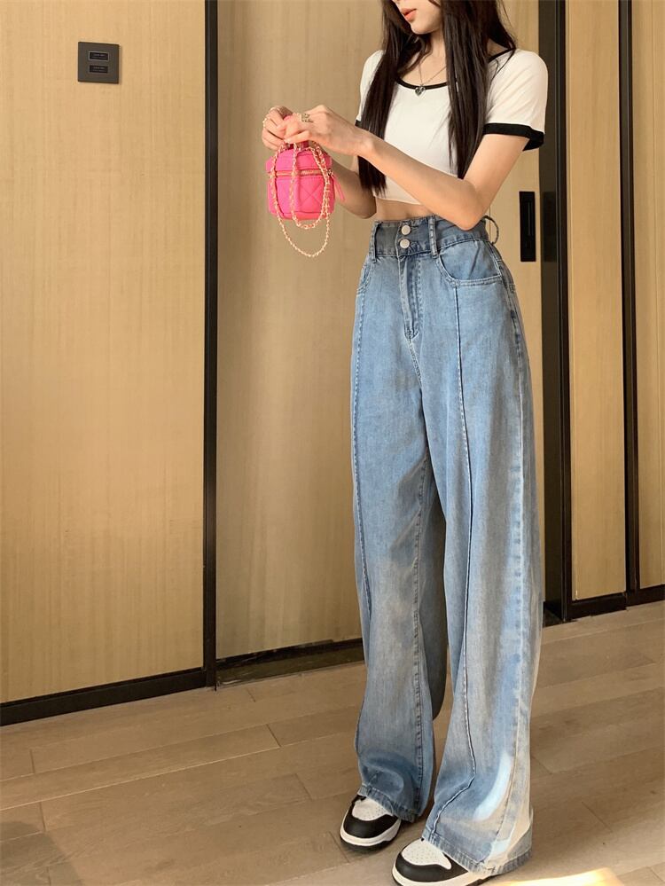 薄いセクション テンセル ワイドレッグ ジーンズ女性のストレート秋 2022 新しい韓国語バージョン オールマッチ ハイウエスト スリム モップ パンツ 0921964148707871