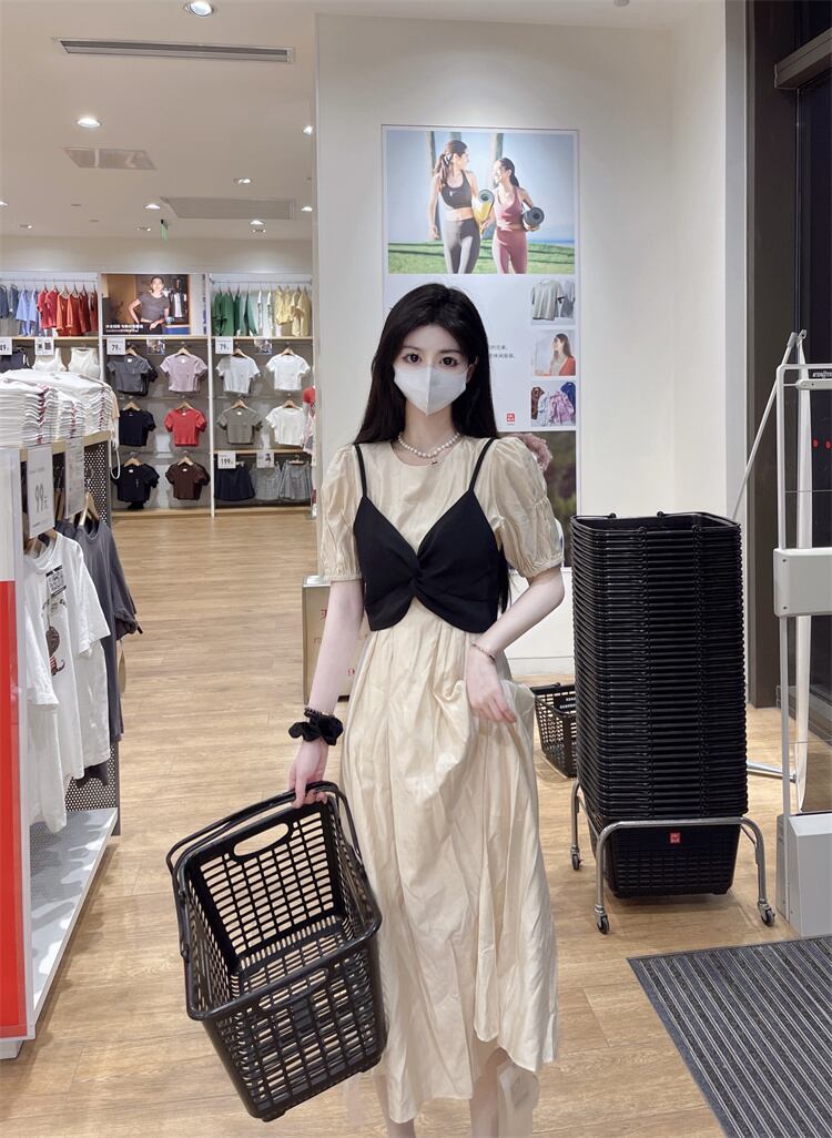 French gentle wind Tencel dress women's summer 2022 new design sense waist and thin mid-length a-line skirt サマー 夏物 スカート Aライン 0921924852059959