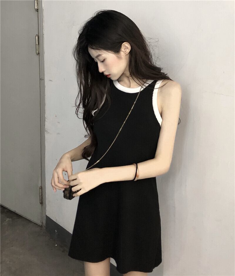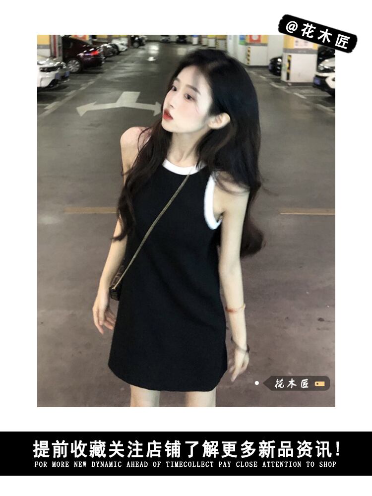 Pure desire hit color round neck vest skirt women's summer 2022 new slim slim short knitted dress ショート サマー 夏物 スカート Oネック スリム 0921974885667192