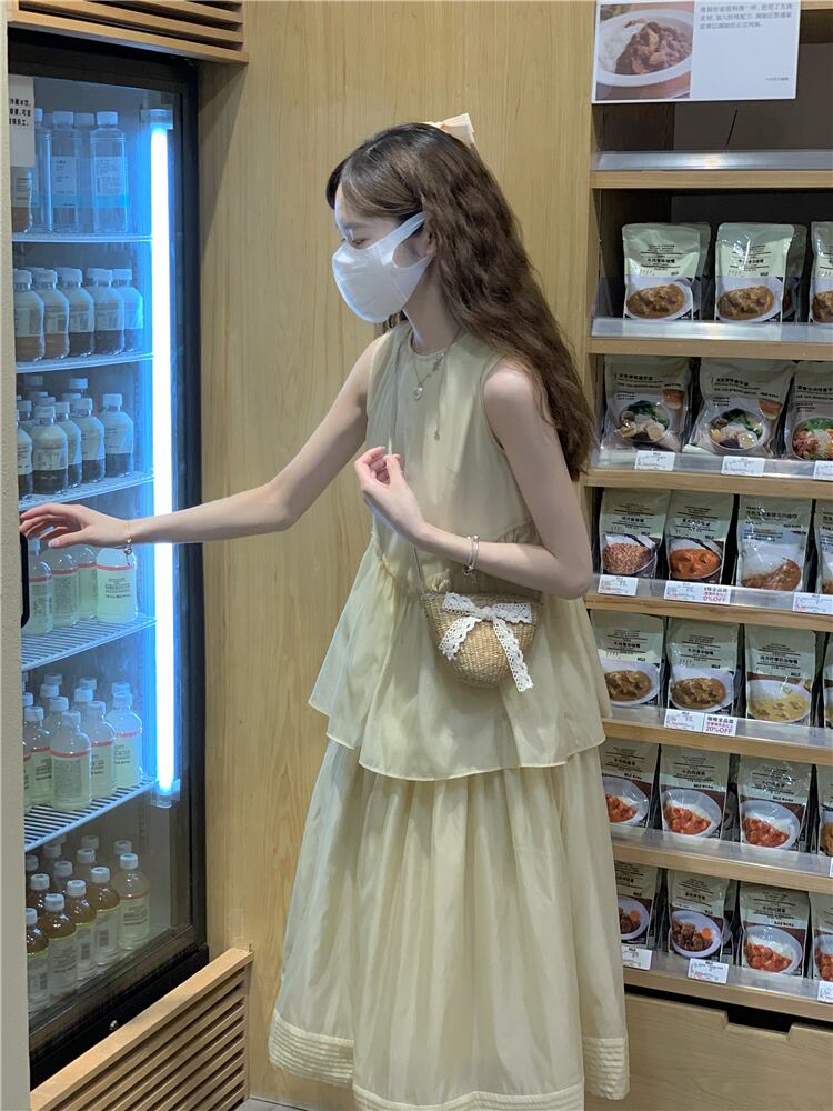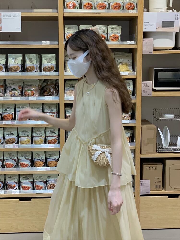 French first love sleeveless dress female summer 2022 new sweet fungus edge mid-length thin fairy skirt 大人ガーリー スウィート キュート カジュアル サマー 夏物 ノースリーブ スカート 0921963978961851