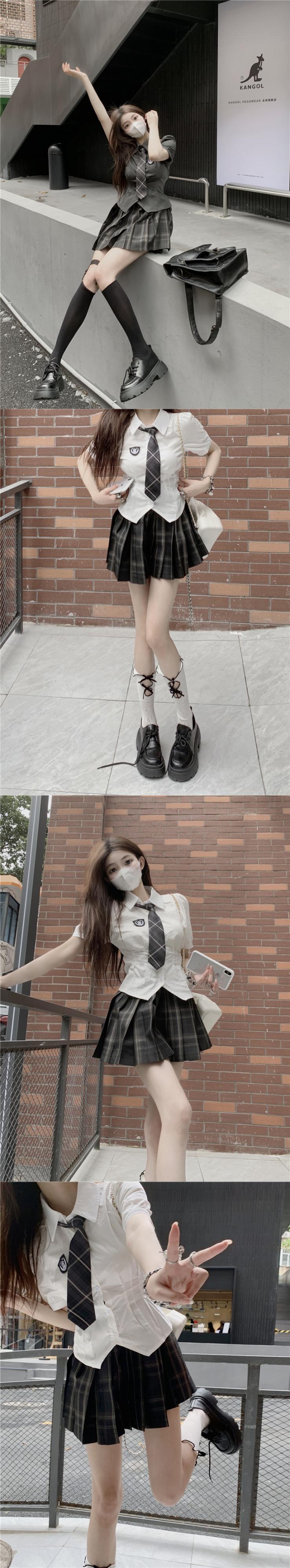 Spice Girls JK Suit Women's Waist Shirt Top Summer Skirt Sweet and Spicy Fried Street Skirt Two-piece Set ストリート 大人ガーリー スウィート キュート カジュアル サマー 夏物 スカート 0921922659517106