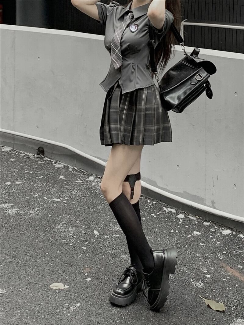 色:ダークグレートップス,ホワイトトップsinglepiece,Singlepleatedスカート
