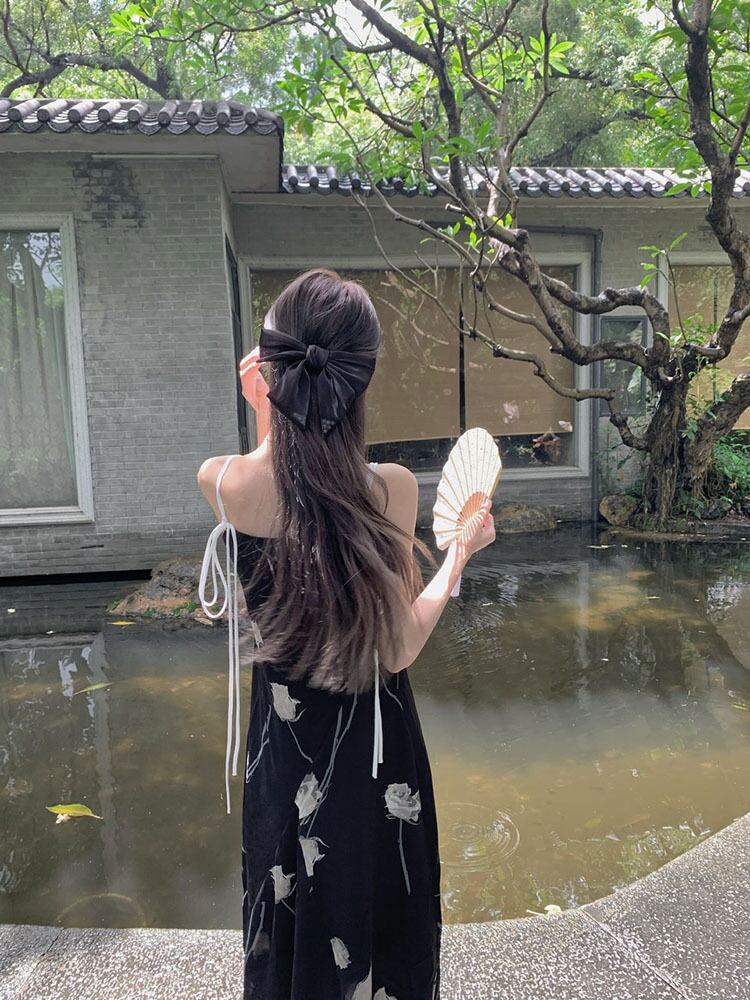 Chinese style mid-length suspender floral dress women's summer 2022 new retro temperament strappy waist skirt レトロ サマー 夏物 花柄 スカート 0921961603614755