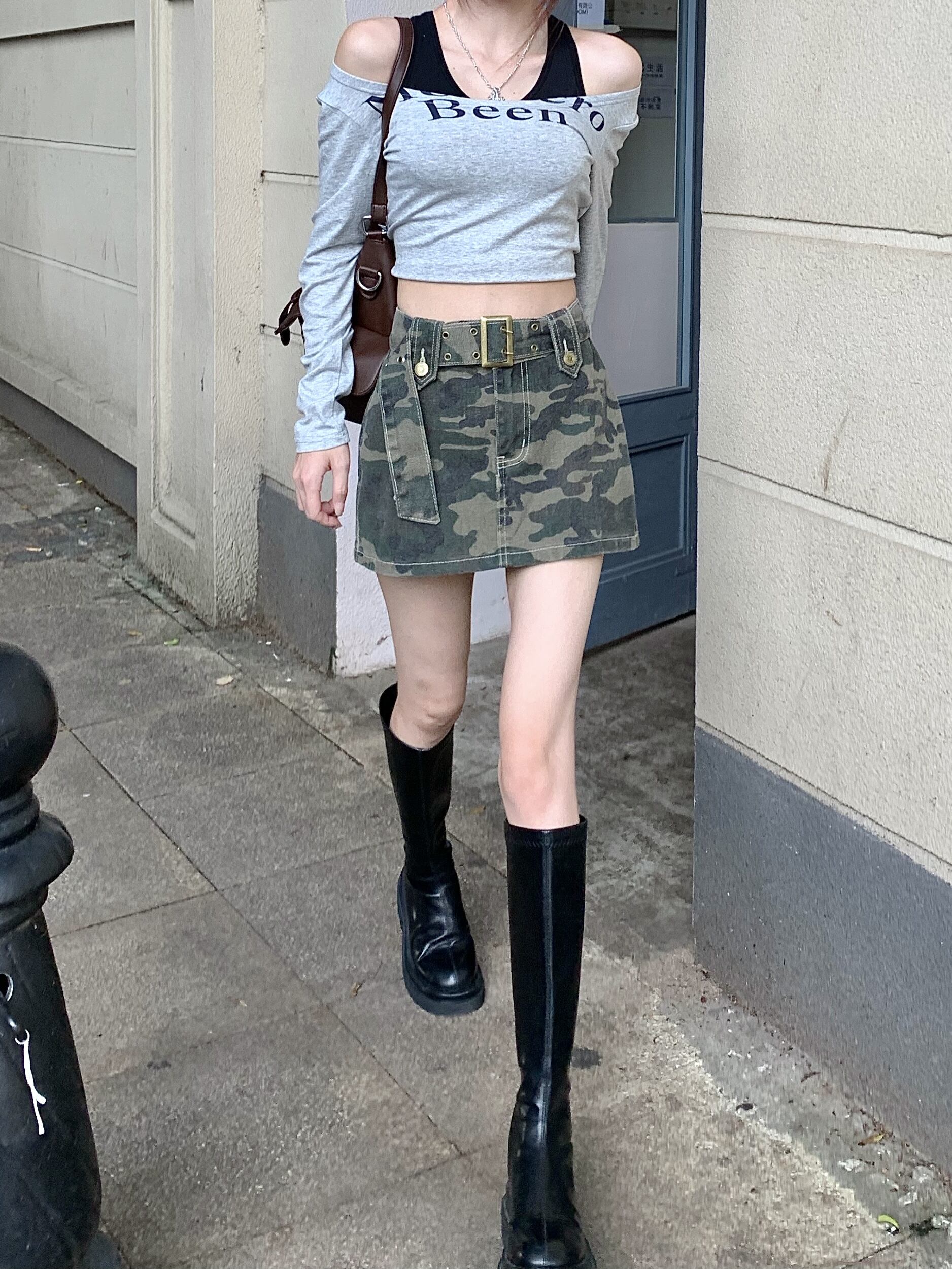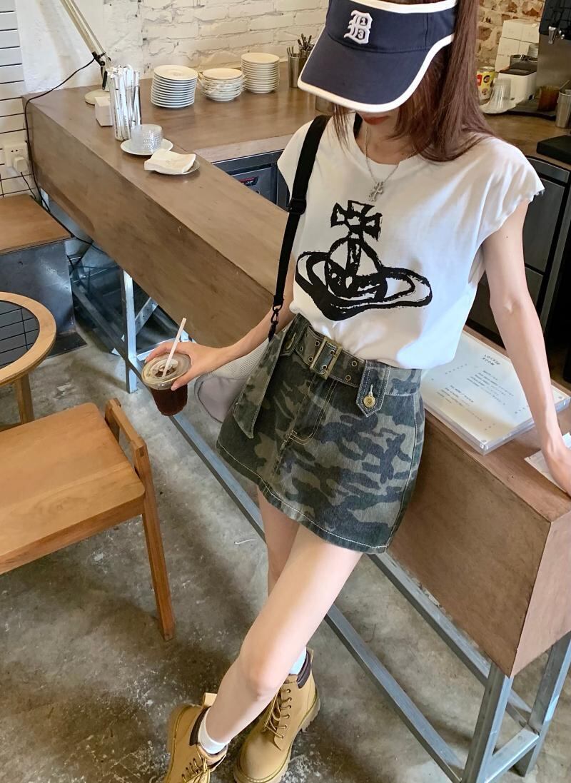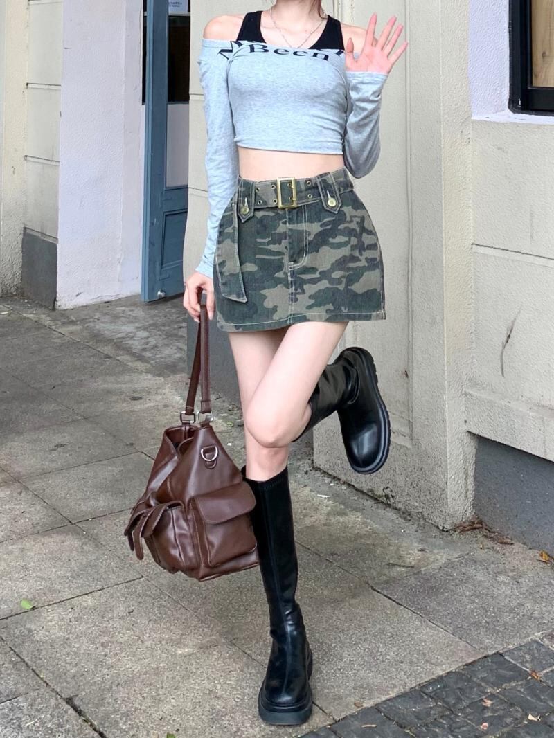 Sweet and cool chic camouflage denim skirt women's summer 2022 new retro temperament high waist short skirt pants tide ハイウェスト ショート レトロ 大人ガーリー スウィート キュート カジュアル サマー 夏物 スカート 0921955540503686