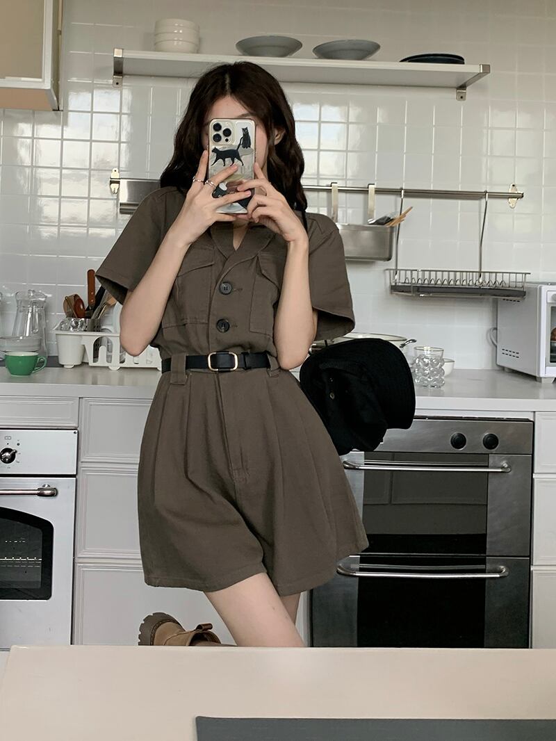 sense tooling denim jumpsuit women's summer 2022 new loose jumpsuit high waist curly wide-leg shorts ハイウェスト サマー 夏物 ショーツ ブルマー 0921984916229124