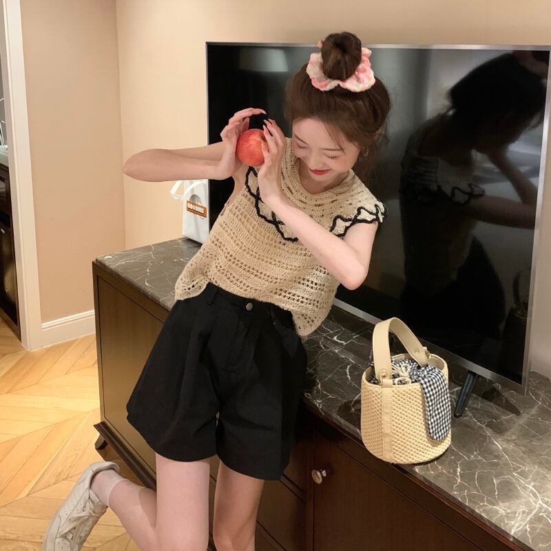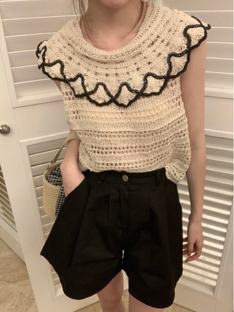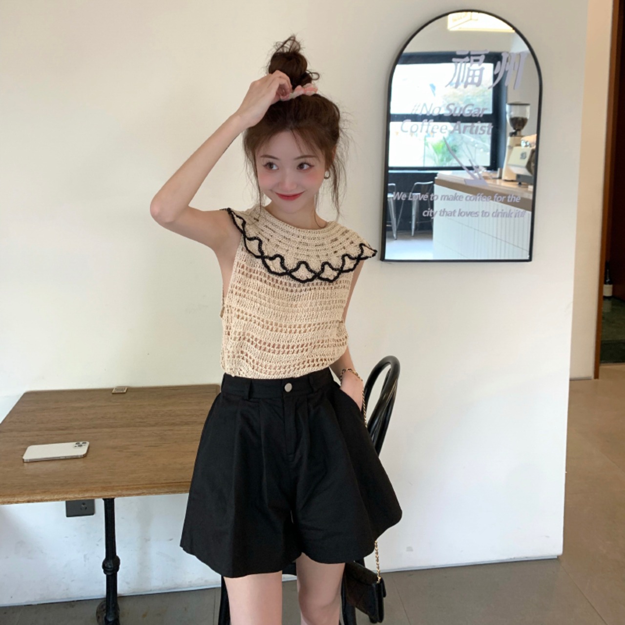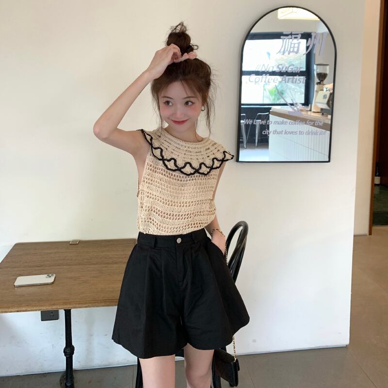 sense contrasting color hollow vest vest women's summer 2022 new chic chic and thin outside with sleeveless vest サマー 夏物 ノースリーブ 0921981847239418