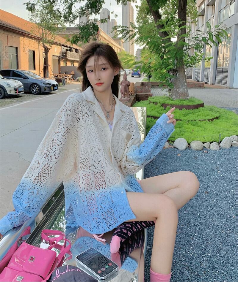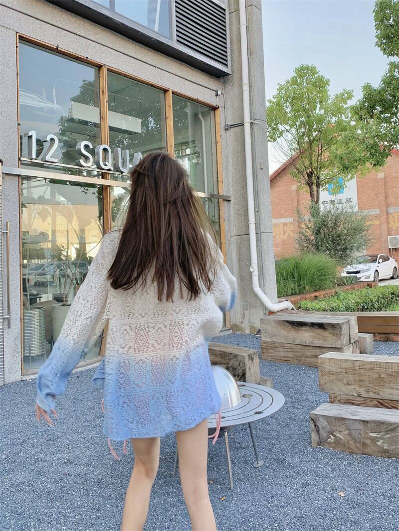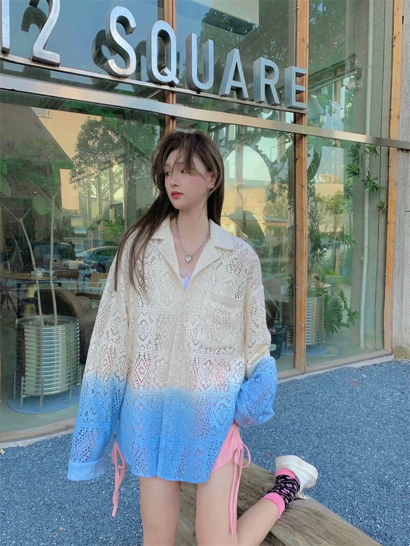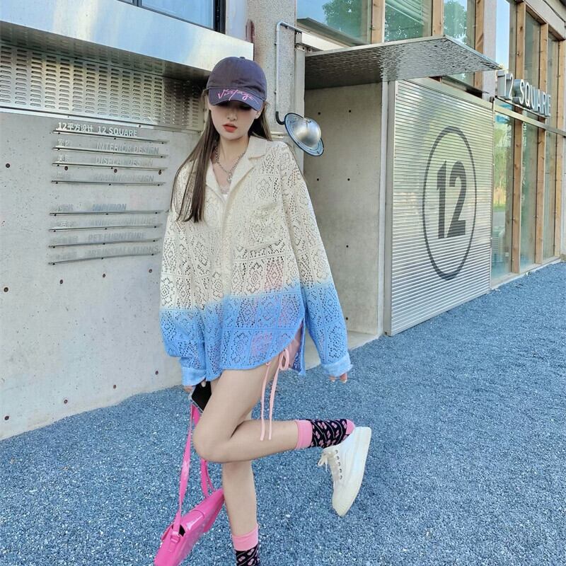 デザインセンスシックな個性グラデーション中空日焼け止めシャツ女性の初秋 2022 新しい韓国バージョンのロングトップトレンド オータム 秋物 0921917310776338