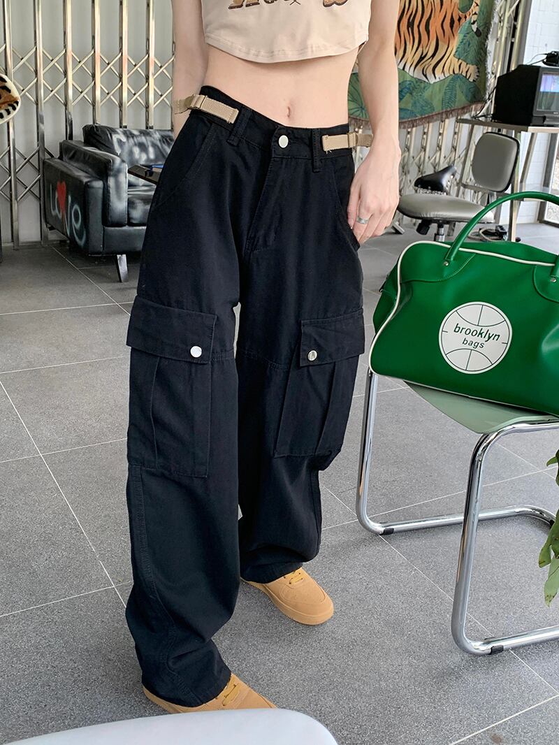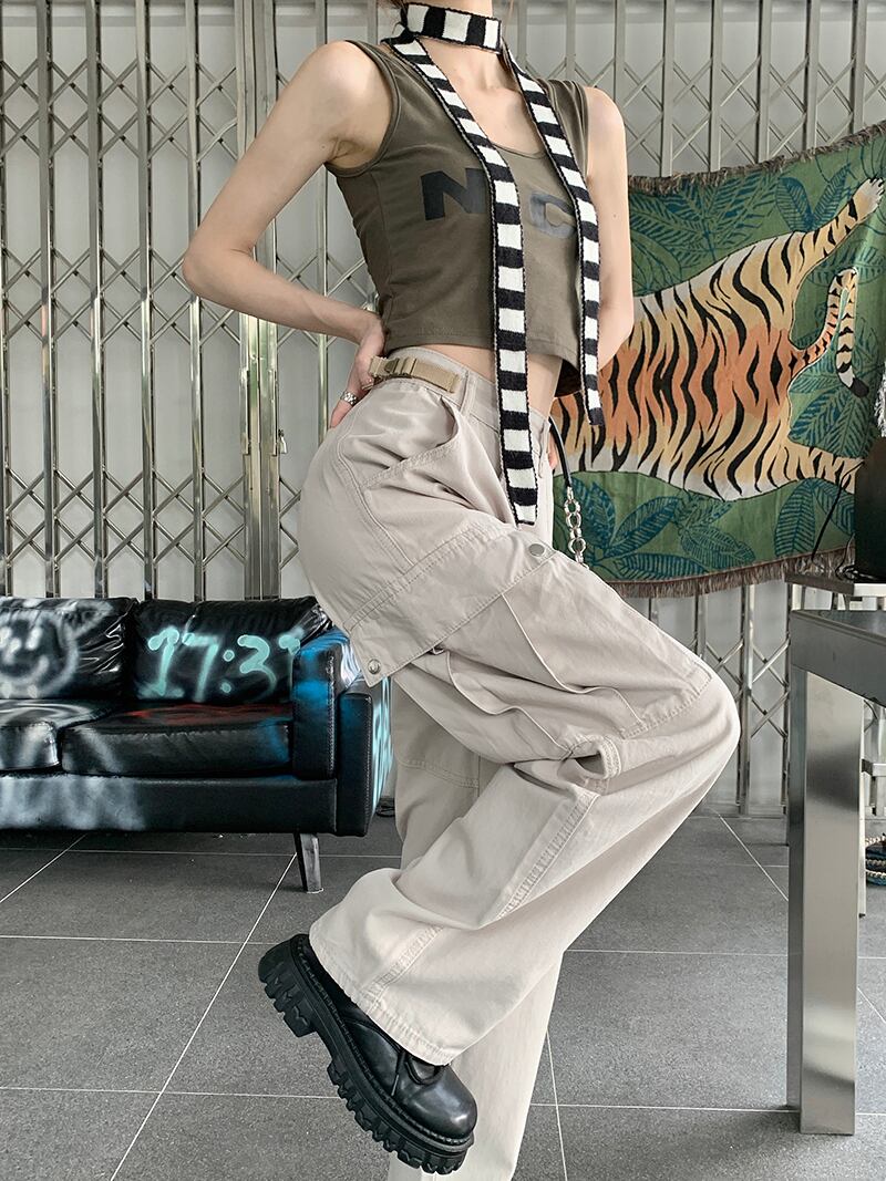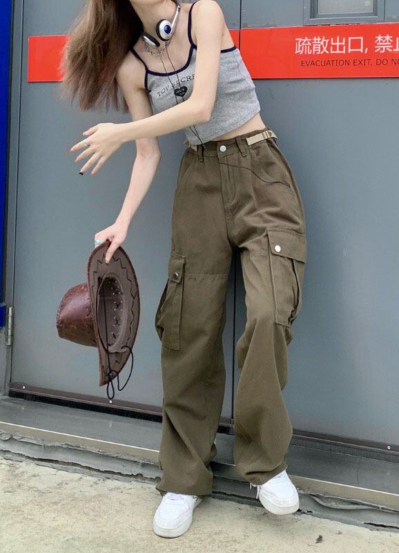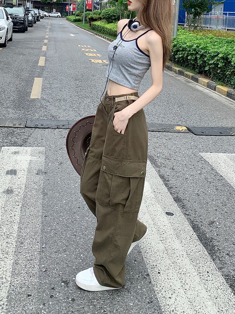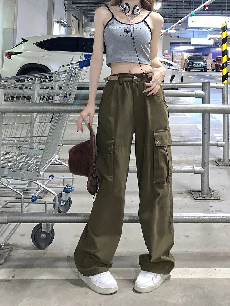 Army green overalls loose wide-leg pants women's summer 2022 new design pockets high waist casual pants tide ハイウェスト カジュアル サマー 夏物 グリーン 0921989582369256