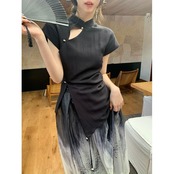 新中国のシックなスーツの女性の夏 2022 新気質中空チャイナトップ水墨画スカートツーピースセット サマー 夏物 0921928050597721
