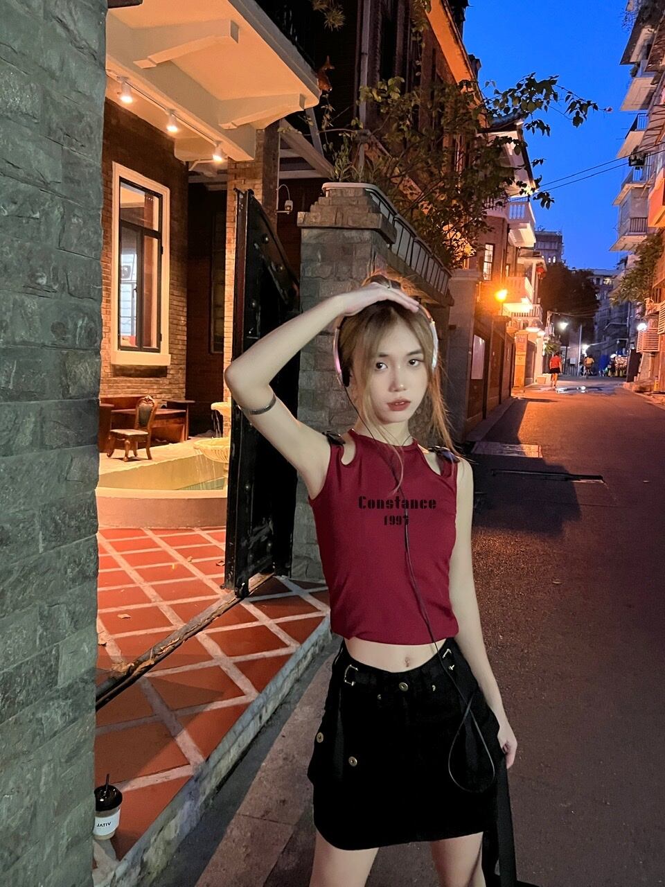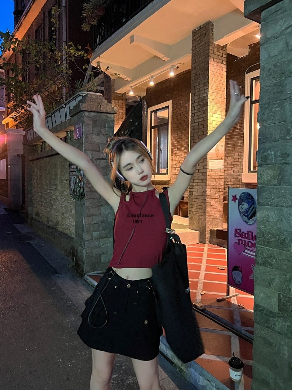 Spice Girls Alphabet Print Camisole Women's Summer 2022 Sleeveless Short Outer Tops ショート サマー 夏物 ノースリーブ 0921973808626688