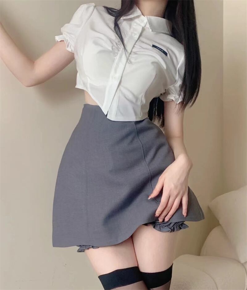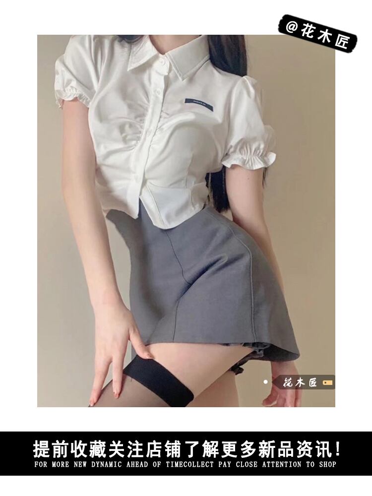 style fashion pure desire suit female summer 2022 new puff sleeve shirt high waist A-line short skirt two-piece set ハイウェスト ショート サマー 夏物 スカート Aライン ピュア 0921935576378631