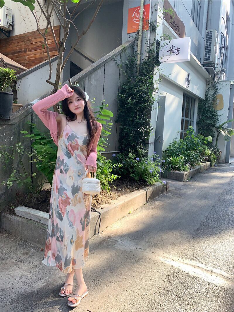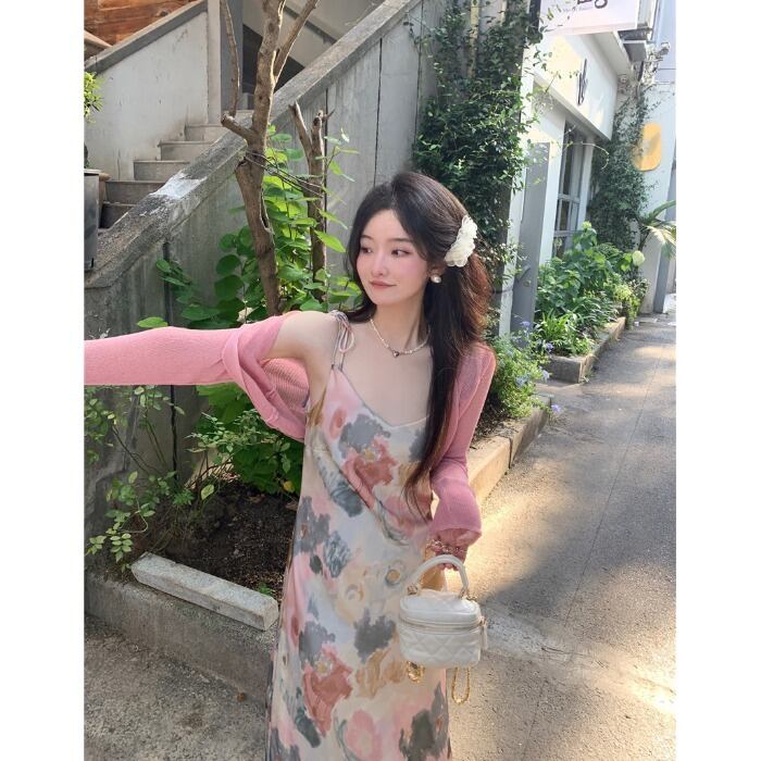 色:ピンクcardigansinglepiece,Oilpaintingcamisole