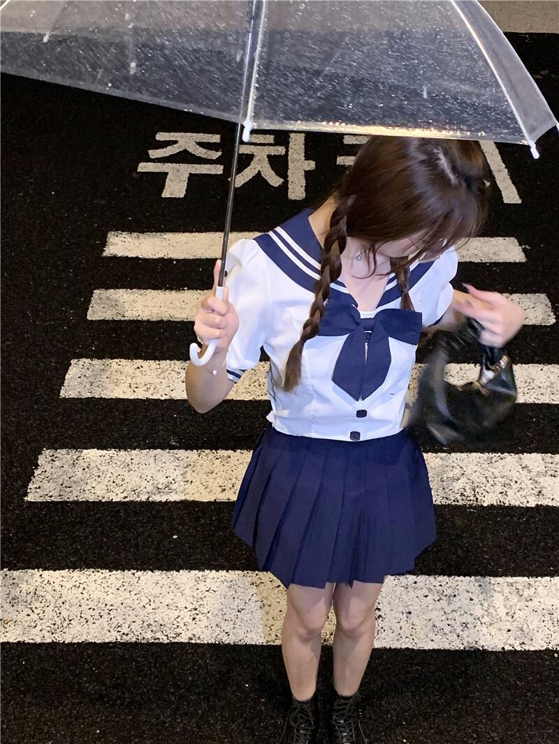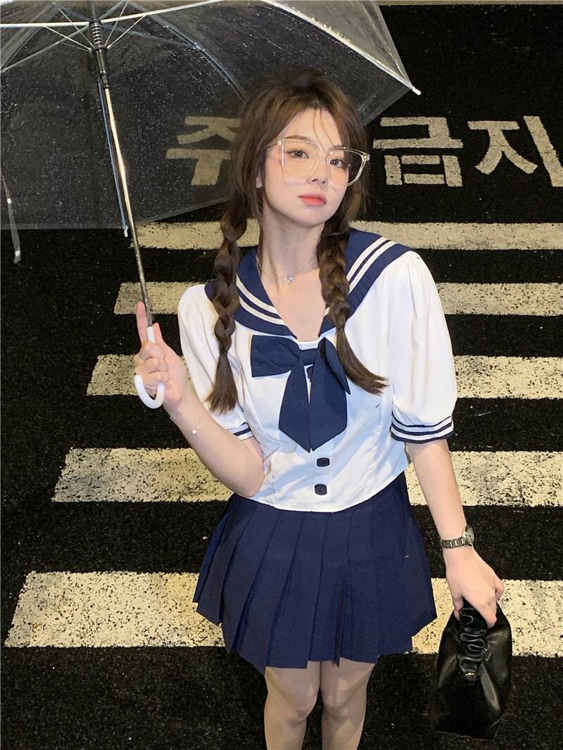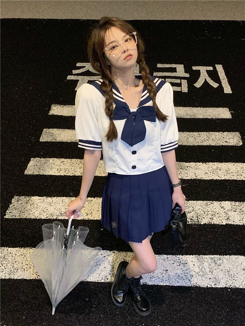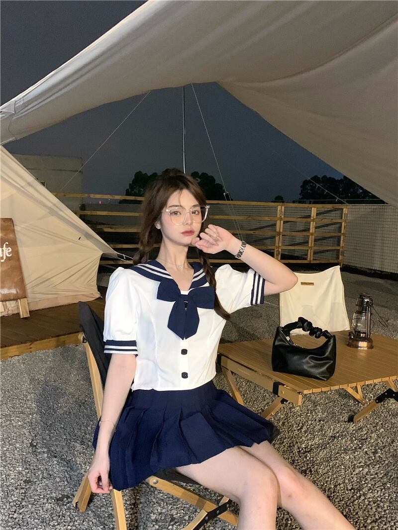 Girls jk unim suit skirt female summer 2022 new niche navy collar shirt pleated skirt two-piece ins プリーツ サマー 夏物 スカート 0921920146682547