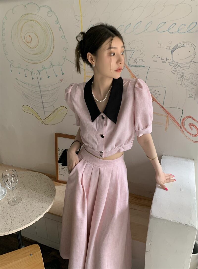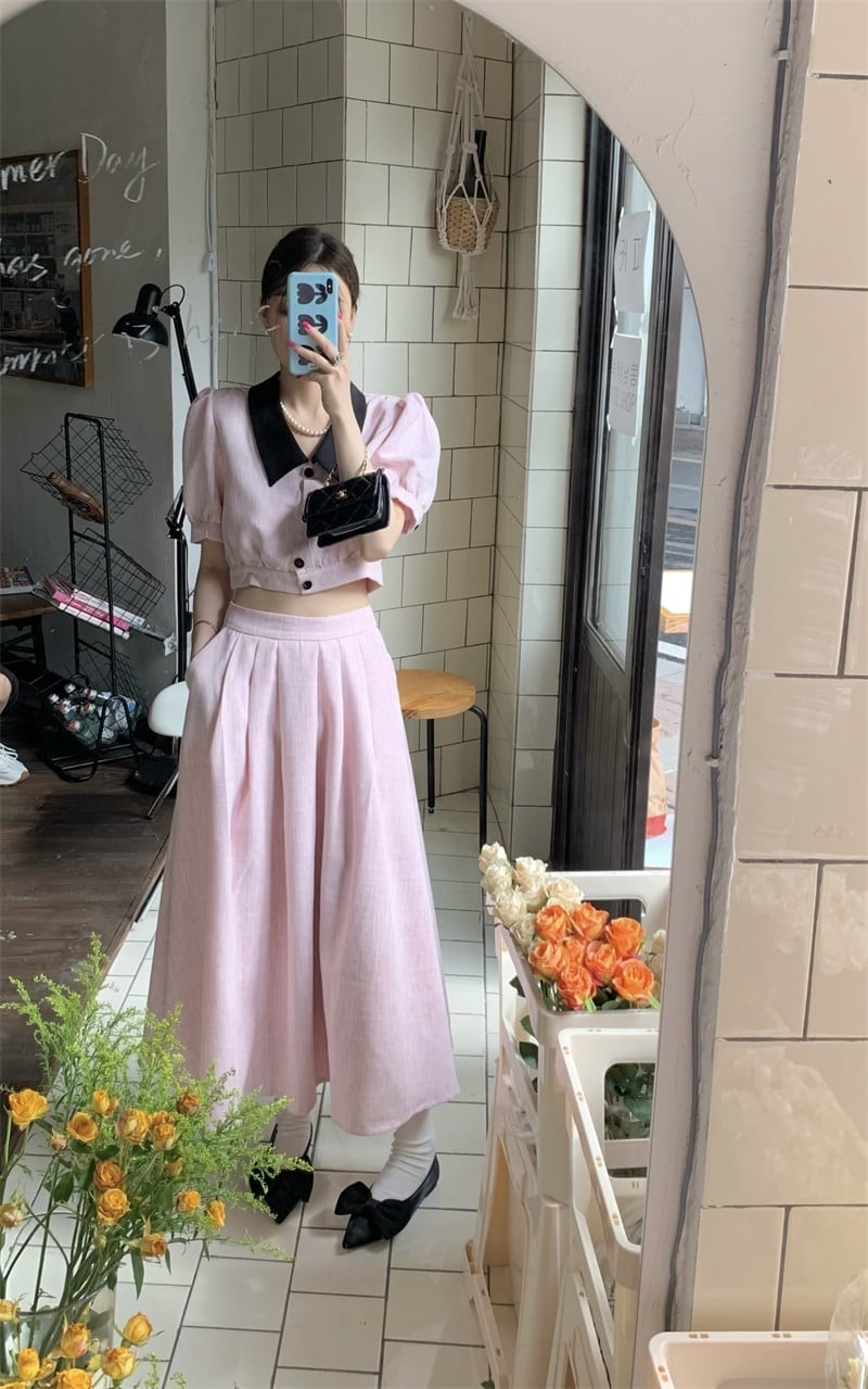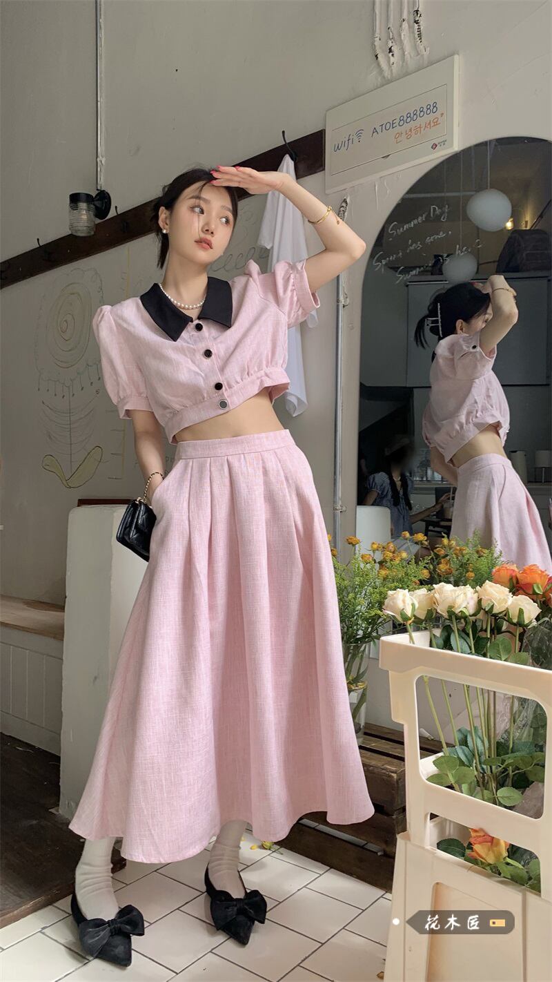 Xiaoxiangfeng suit female summer short-sleeved shirt coat high waist skirt long skirt fashionable high-end two-piece tide ハイウェスト ロング サマー 夏物 スカート 092192544312847
