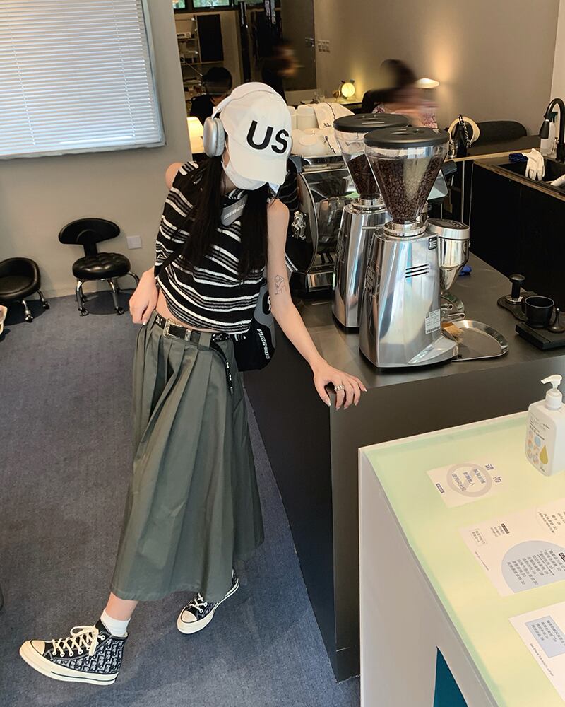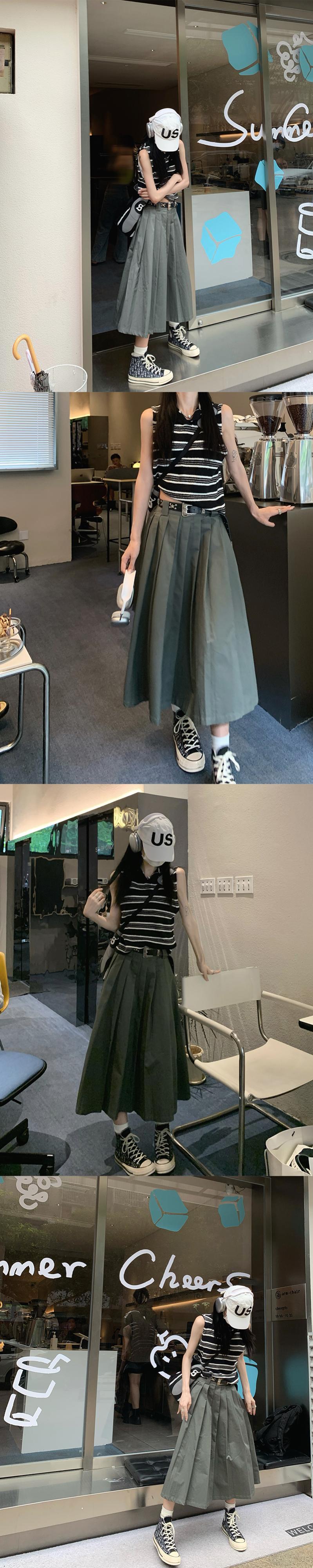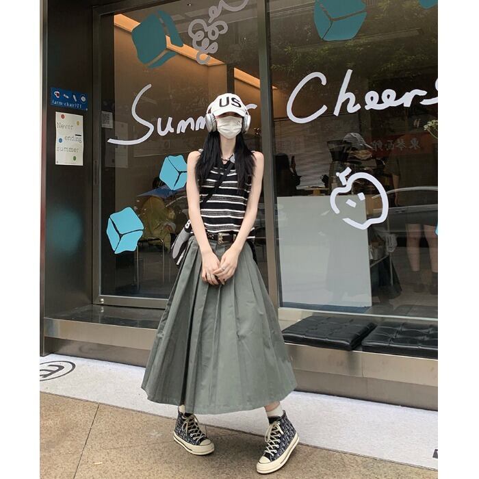 version of the design sense of high waist thin gray skirt women's summer 2022 new mid-length pleated A-line skirt trend ハイウェスト プリーツ サマー 夏物 スカート Aライン 0921963589894579