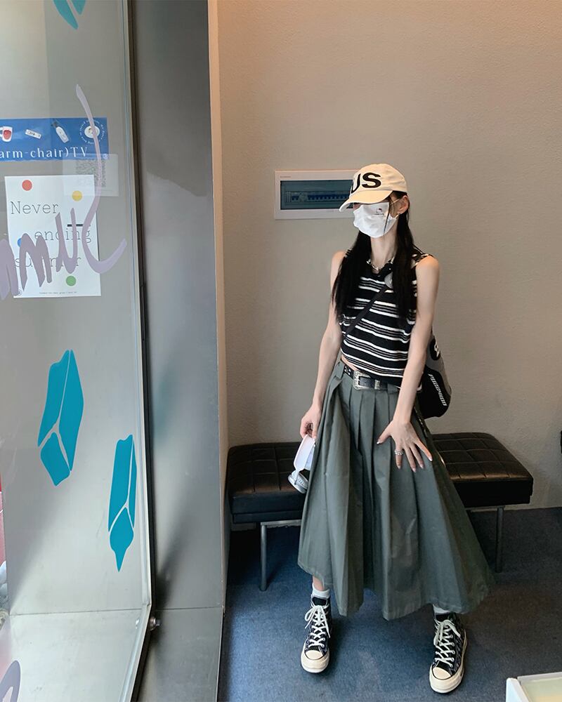 色:ブラックストライプdvest,グレーhalfスカートsinglepiece