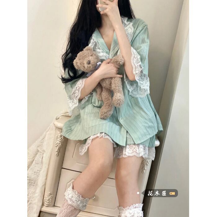 ese sweet chic lace pajamas suit women's summer 2022 new home clothes two-piece trend レース 大人ガーリー スウィート キュート カジュアル サマー 夏物 0921965740414384