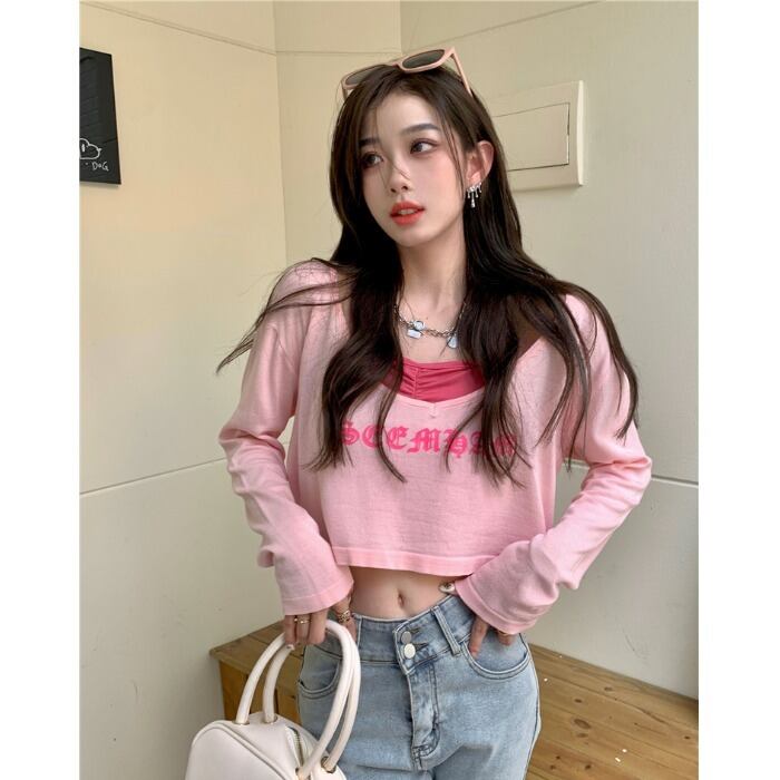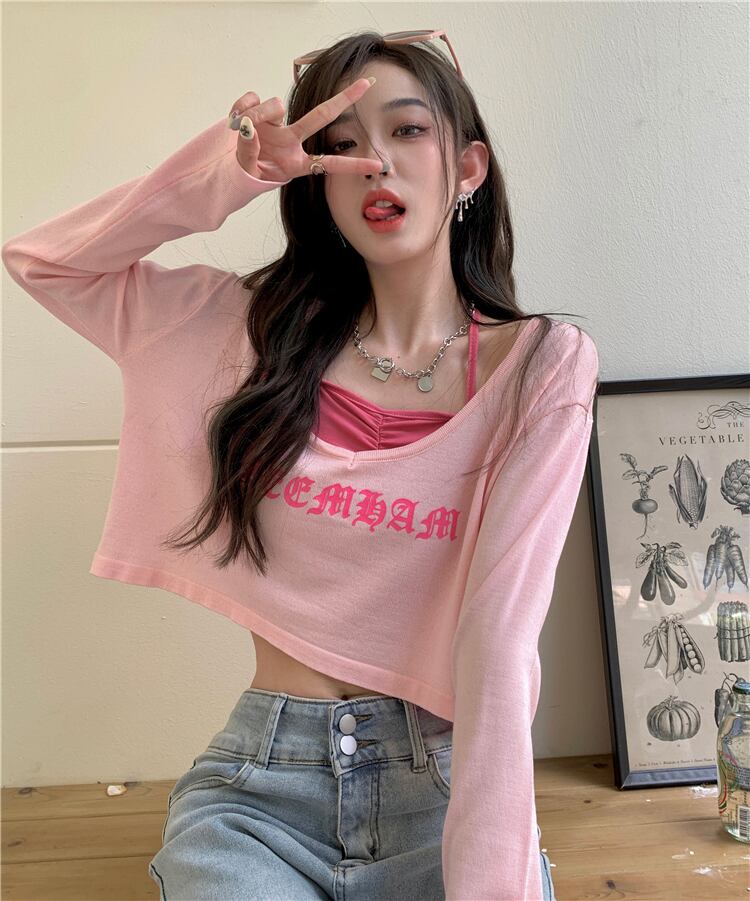 version thin loose sunscreen sweater women's autumn 2022 new chic print all-match thin long-sleeved top ロング オータム 秋物 0921977596295978