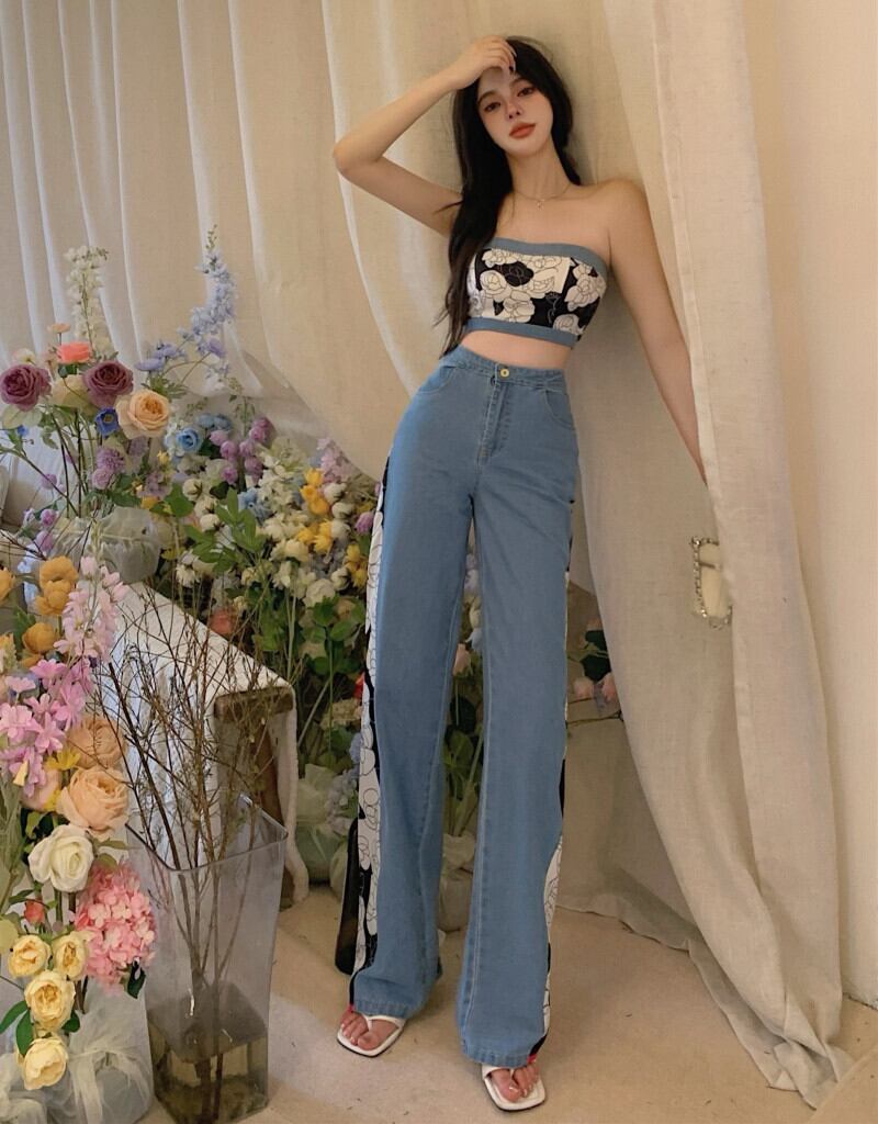 sense printing wide leg jeans women's straight fall 2022 new retro high waist slim pants trendy ins ハイウェスト レトロ スリム ワイドレッグ ワイドパンツ 0921973568391231