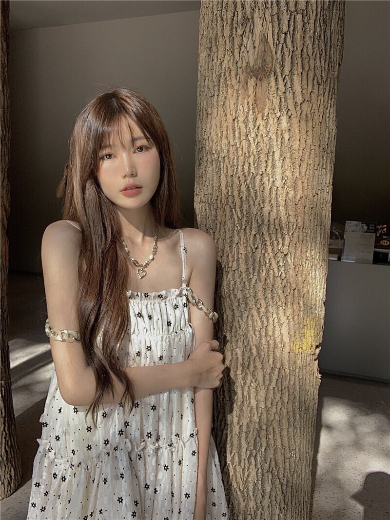 Pure desire wind super fairy printed chain suspender dress female summer 2022 new fungus edge sweet and spicy slim skirt プリント 大人ガーリー スウィート キュート カジュアル サマー 夏物 スカート スリム チェーン 0921952401410879