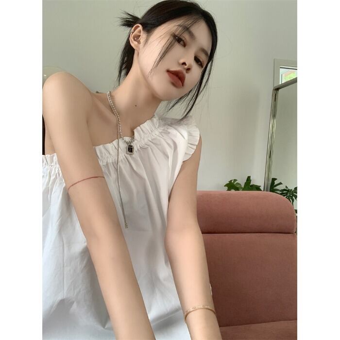 sense fungus edge slanted shoulder white shirt women's summer 2022 new chic loose all-match sleeveless top trend ホワイト サマー 夏物 ノースリーブ 0921932091195215