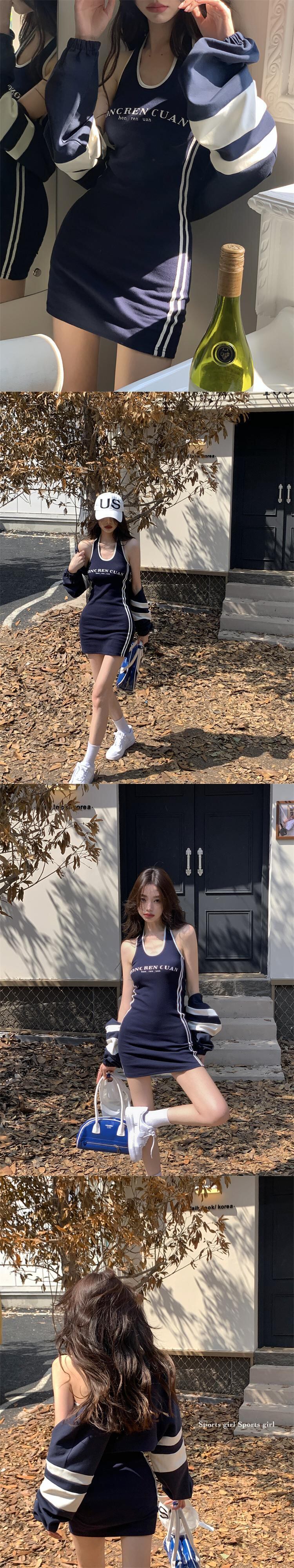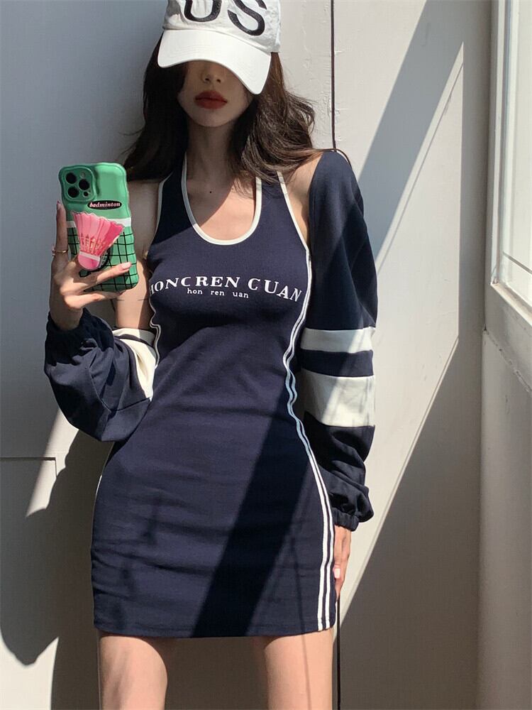 American fashion suit skirt women's autumn 2022 new print halter dress long-sleeved jacket two-piece ロング オータム 秋物 スカート 0921983234154219